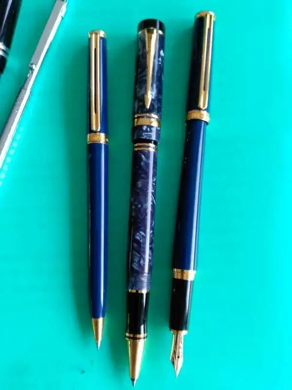 Ahí van las mias de esta semana. También en azul y negro. Pluma+portaminas+roller. Por un lado las discretas, en negro y plata. Por otro lado, las azules, más sofisticadas.
