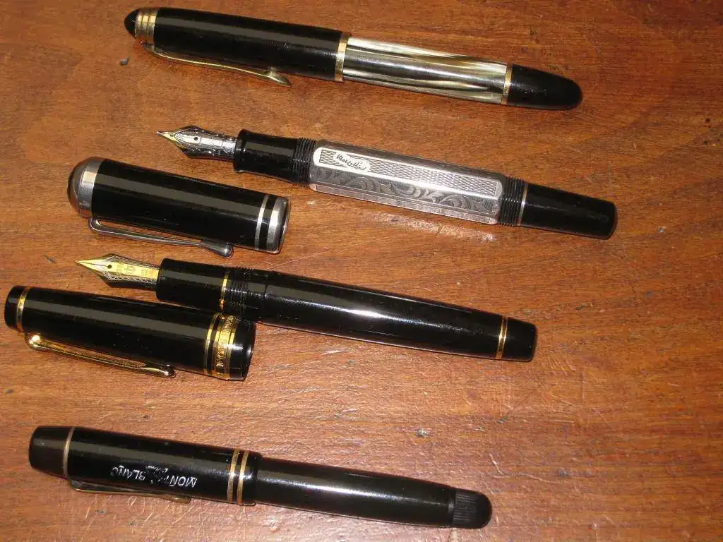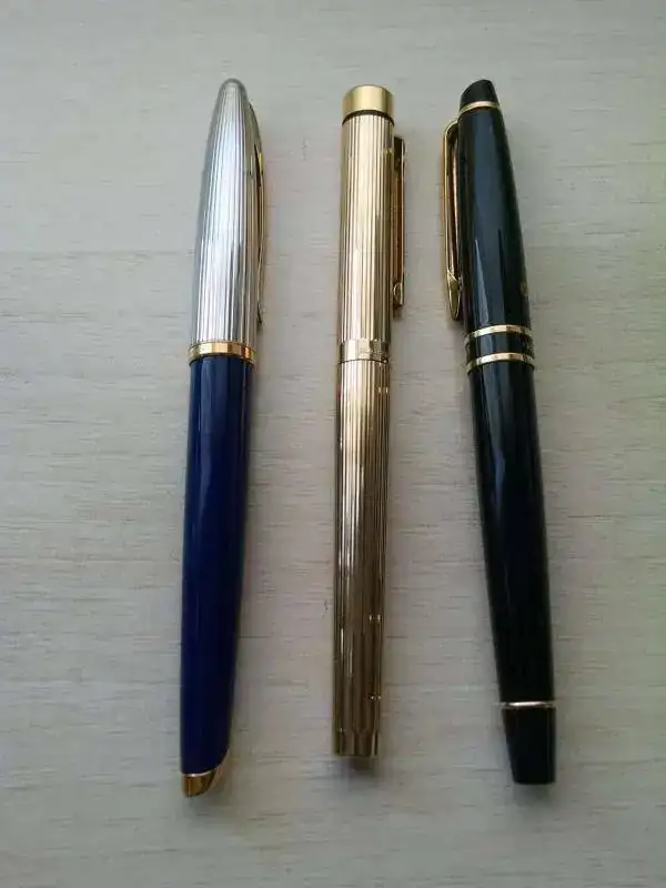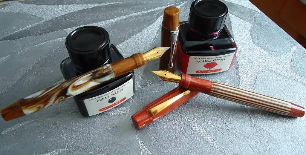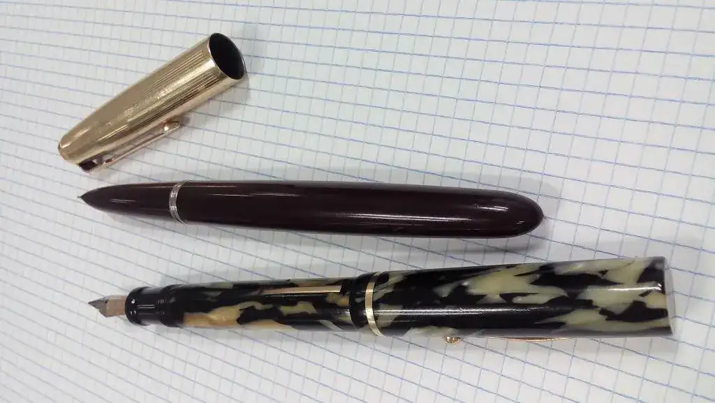 De izquierda a derecha: PAN alemana, plumín medio y semiflex. Waterman 454 día y noche, no muy corriente. No sólo Parker hizo mandarines; aquí una Diamond Medal Diplomat en Mandarín Finalmente, preciosa estilográfica Antigua´s en una bella ebonita marrón, plumín nº 6 semiflex, recién entregada por el compañero Maygo <img src="https://relojes-especiales.com/foros/attachment.php?attachmentid=342196"/>