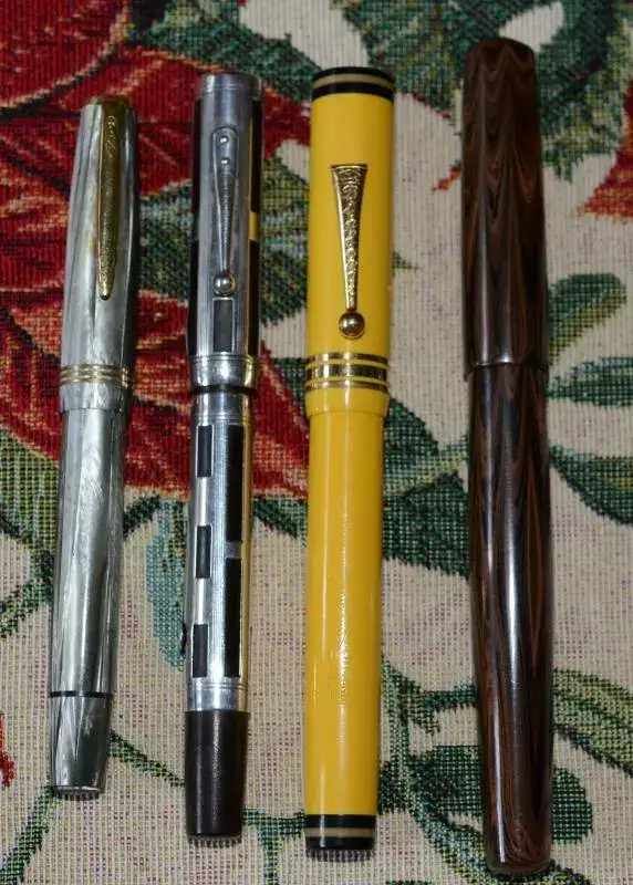 La primera una doric Oversice grei en personal point con su pencil correspondiente y la segunda, la Oversice negra, gold seal, también personal point, datadas entre 1.929 y 1.931 Todas ellas con plumín Flex, y Finitas y jugosas de trazo. Ahí van dos malas fotos.