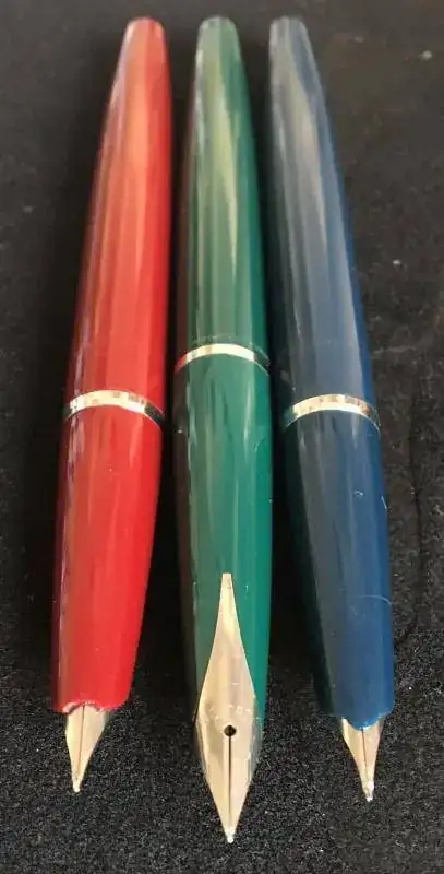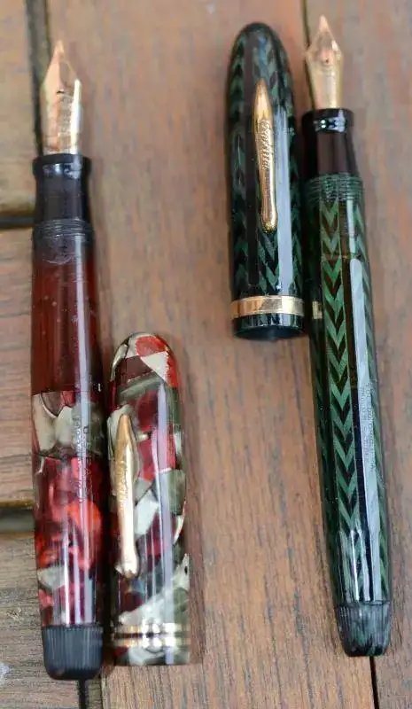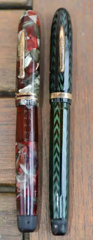 Dos Conklin en bonito celuloide; una 7.000 palabras ya limpia para ser guardada y otra hermana suya en bonito color verde.