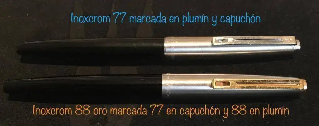 A todo esto, gracias a estos post acabo de descubrir que tengo otra variante de la inoxcrom 41: tiene el capuchón marcado inoxcrom con clip inverted de parker 21 y en la carga aerométrica ni pone 41 ni hecha por industrias MAVA solamente está marcado como inoxcrom.