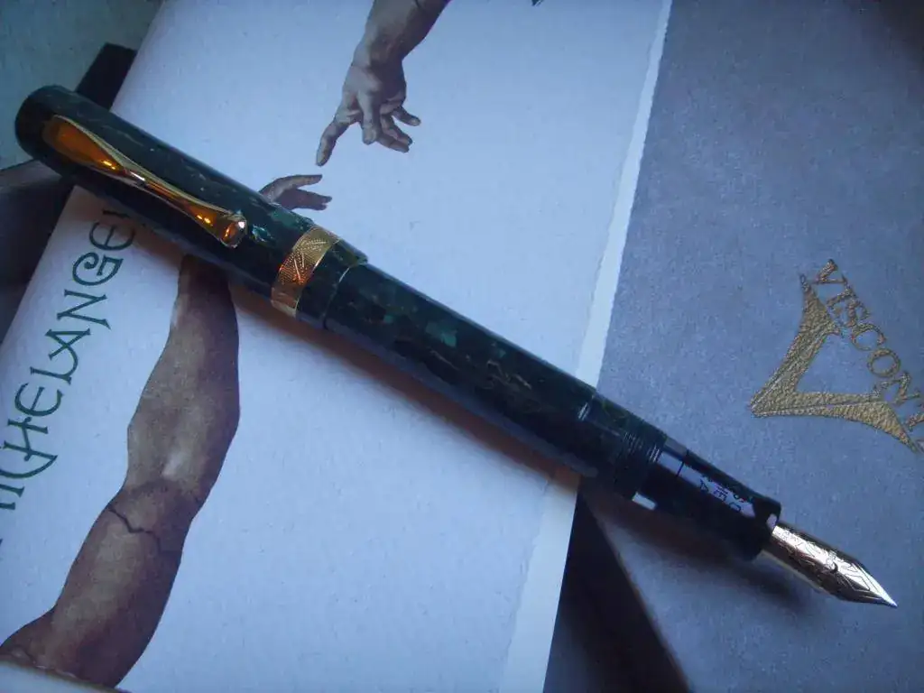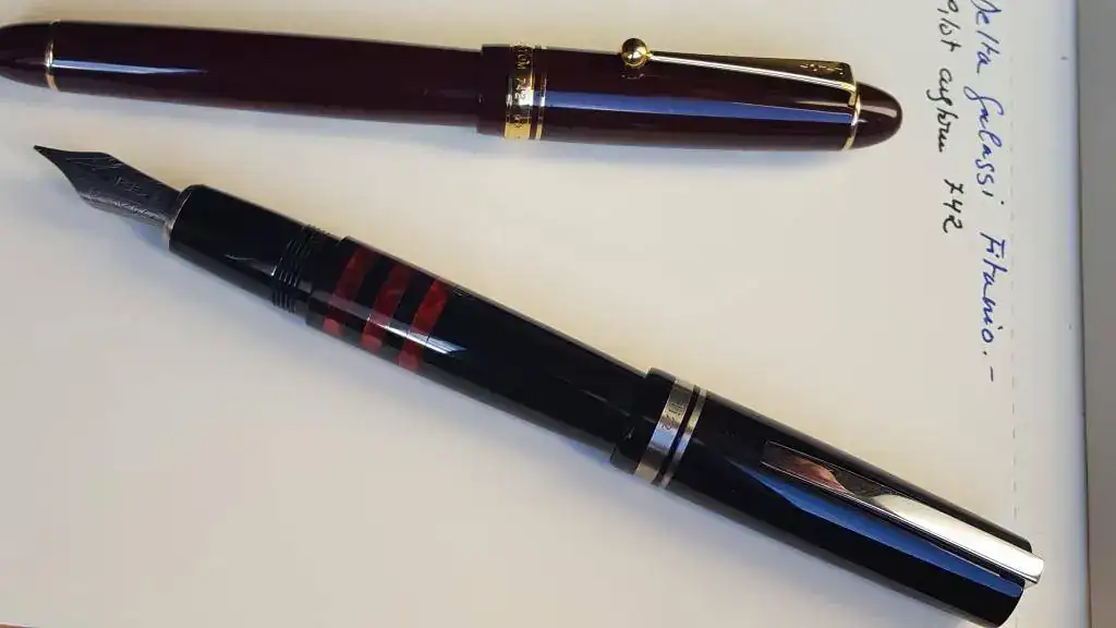 La Delta The Journal es una italiana en toda regla por sus acabados, diseños y esencia. Su plumin F es grande y generoso como las anteriores. De momento la uso poco, por lo que no arranca a la primera, falta de uso?, tinta Diamine Purple Imperial?, no lo sé, pero no me gustaría deshacerme de ella por este inconveniente.