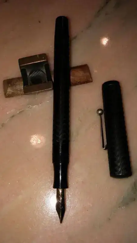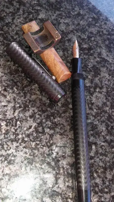 Esta semana, una estilográfica en ebonita negra, de la compañía "The Autofiller Pen". Esta firma fue fundada por Albert E. Schaaf, manteniéndola en activo de 1903 a 1920. En en año 1903, Schaaf patentó un sistema de carga automática, que funcionaba mediante "twist Filler". Al girar la pieza de ebonita insertada en el saco, éste se retorcía produciendo el vacío (la patente aparece grabada en el cuerpo de la estilográfica).