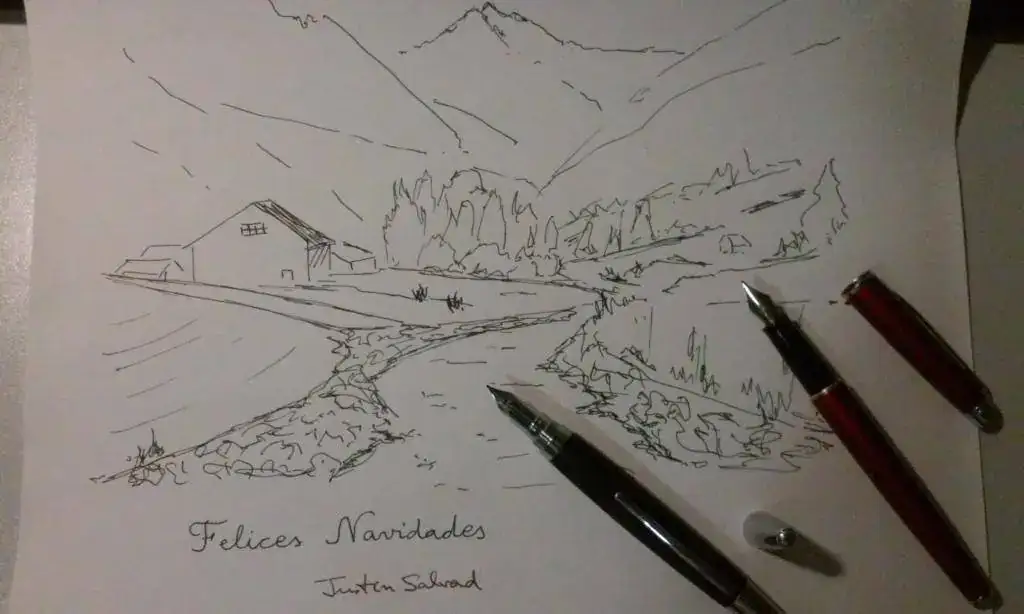 Para esta semana llevo la Waterman Hemisphere con Lié de The (a la derecha) y Enzo Varini (no sé el modelo) con Evergreen. El dibujo está hecho con esta última.