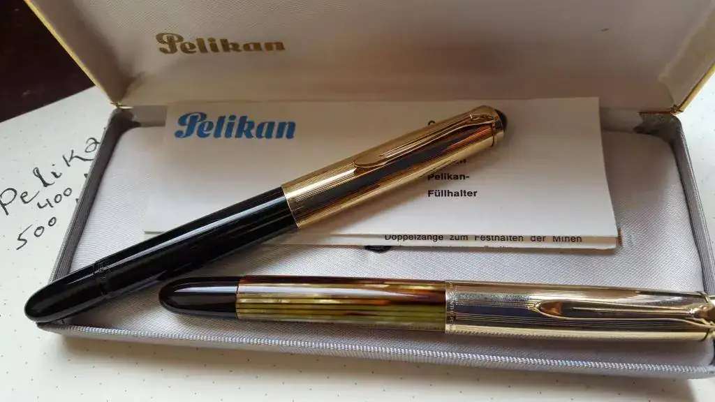 La negra con capuchón dorado es una pasada, es una 400NN por su culote ovalado no?Pues esta semana y a falta de limpieza de las anteriores, ya están preparadas éstas, también Vintages, Y Todas Pelikan 400 y 500 en su variante NN y con diferentes plumines; pero priman los oblicuos, todos ellos son semiflex y su fiabilidad, flujo y escritura son impecables, 1 saludo y espero que os gusten la 500 NN negra como todas con tonos verdosos al trasluz, se fabricó para exportación lo que la hace aún más especial.