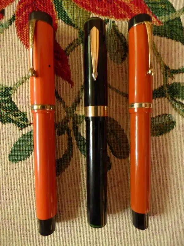 Parker Duofold roja,que junto a otra compañera igual, enmarcan a una poderosa John Holland.