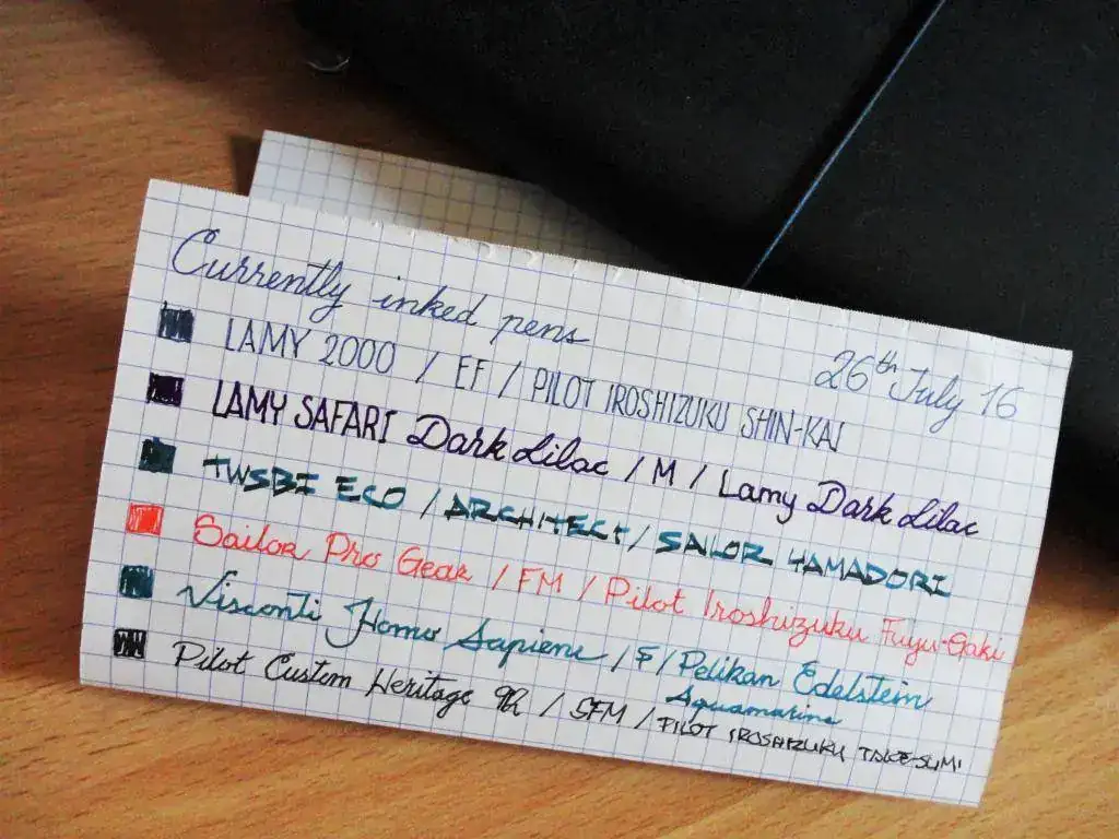 Pues esta semana os presento... lo mismo que la anterior... (las fotos si que son nuevas, ¿eh?). El único cambia ha sido el de tinta en la Visconti, que ahora lleva Pelikan Edelstein Aquamarine. Tengo muchas plumas cargadas ahora mismo, espero reducirlas a tres de nuevo, así que no creo que haya muchas sorpresas la semana que viene...