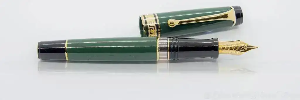 Esta semana tenemos rotación, os presento en primer lugar una aristócrata italiana de abolengo, aurora optima green serie especial en color verde y negro, fabricada en celuloide, montando un plumín de oro de 18k y punto M, ciertamente con personalidad que hemos domado con un afinado de micromesh.