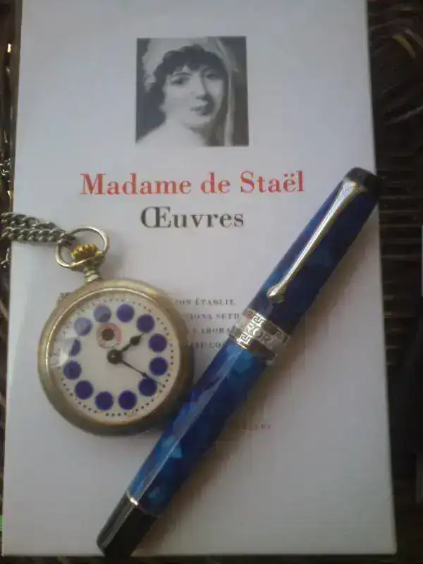 Un homenaje a esta gran mujer , Madame de Staël, innovadora , intelectual y humanista. Se plantó en Weimar a conocer a los grandes monstruos de la literatura alemana, introdujo la cultura y la literatura alemana en Francia, un fenómeno de mujer ...y además rellenita y linda, luego dicen que no se comía bien.CAM01588.webp
