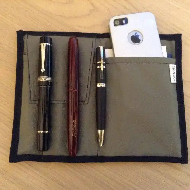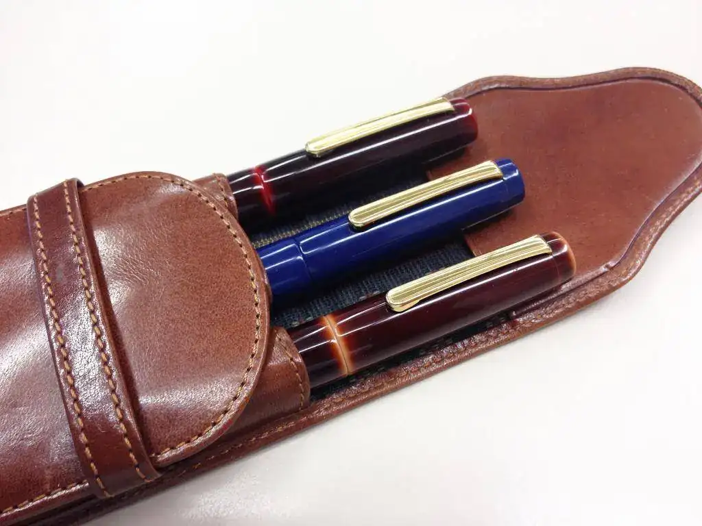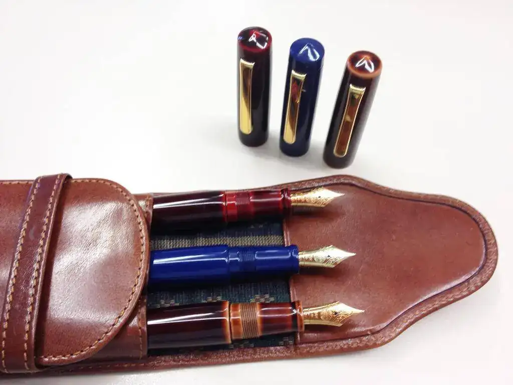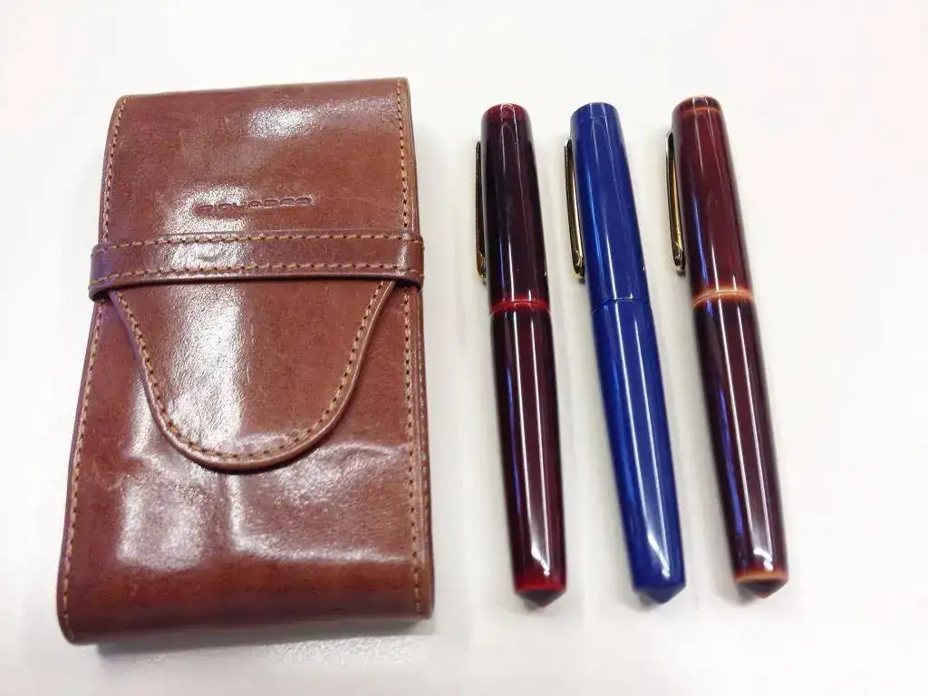 El estuche es de lo mejor en estuches, Piquadro tamponato, adaptable a los tamaños de las plumas, excelente piel, producto italiano de alta calidad. Ya no se encuentran, el último que tenía algun estuche a la venta era uno de Australia. Tengo dos estuches, uno para mis Piccolo y otro para mis Aurora Optima.