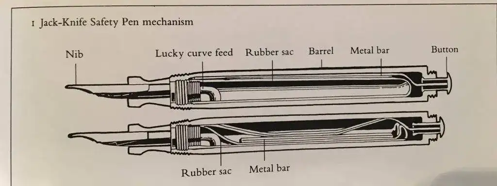 Carga por cartuchos y el clip del capuchón sale pulsando un botón es una pluma bastante curiosa. Si tienes más interés preparo un hilo con fotos.