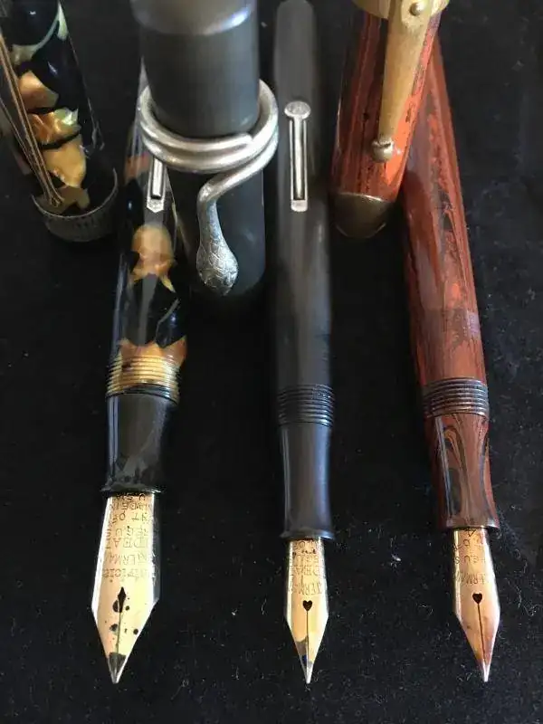 Esta semana tengo a mi querida Pilot CH 912, una pasada de plumín suave como la seda y FM, combinación ganadora. La Visconti Homo Sapiens, debería haber una en cada casa. Mi queridísima Franklin Christoph con nuevo plumín recién llegado de los Estados Unidos. Se trata de un plumín "flexible" y S.I.G.. Como ellos mismos dicen en su web, es un flexible moderno y nada que ver con los vintage (tampoco es que yo busque eso). Pero permite una variación de línea estupenda y es muy suave. En cuanto al tallado S.I.G., probablemente sea marketing puro y duro, pero oye, estamos hablando del mercado de las estilográficas, que nos las venden con un simple cambio de color. S es Stub, I es Italic y G Gradient. Viene a ser un plumín intermedio entre un stub y un italic. Y dependiendo del ángulo será una cosa u otra. A mí me encanta. La Kaweco, que si la dejo dos segundos destapada no querrá volver a escribir y se me queda seca la pobre (¿alguna idea?). Y dos de las 6 Jinhao 992 que recomiendo fervientemente. Escriben que da gusto y no parecen frágiles. La tinta no se evapora como en otros de sus modelos y son bastante chulas. Merecen mucho la pena.