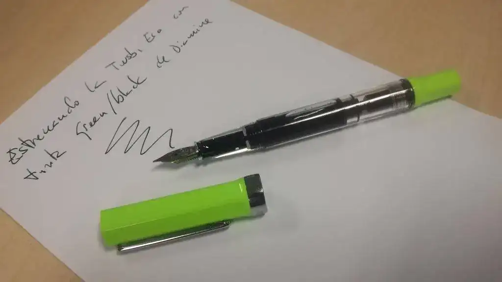 Dicho esto, a mi me gusta: su estética original, el cuerpo facetado, una Twsbi no transparente, un plumín fantástico, pistón, precio asequible...