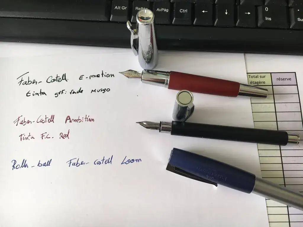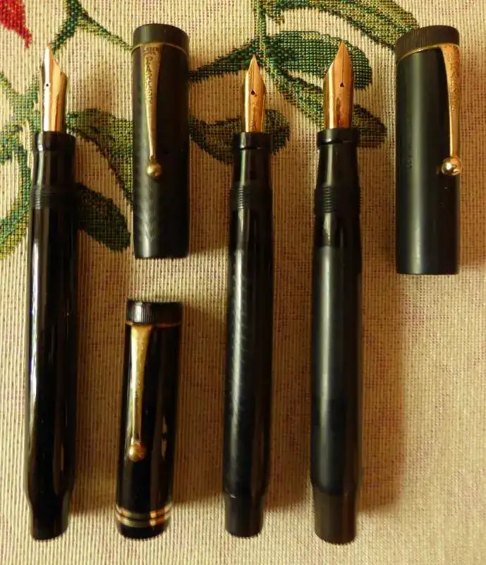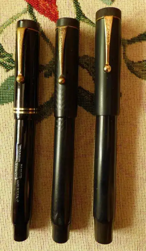 De estricto negro, una Parker Duofol tiene a su derecha dos Parker Lucky Curve.