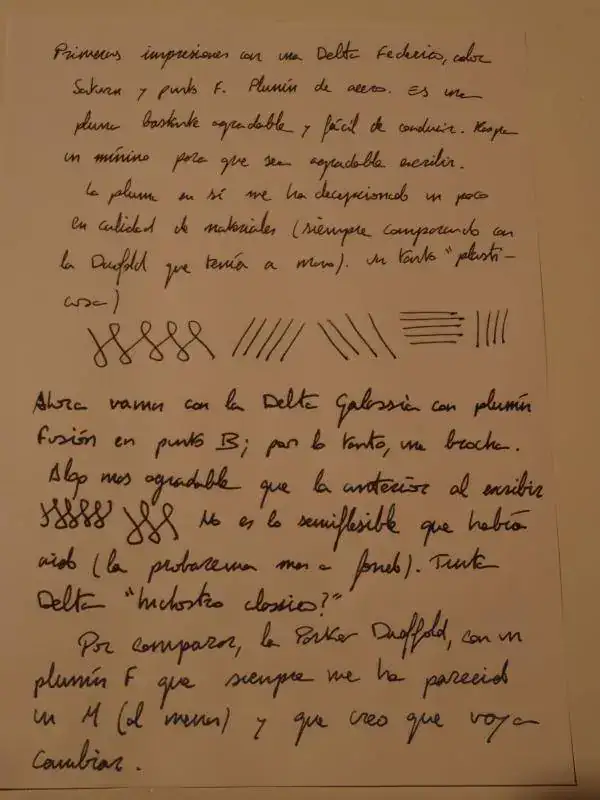 La Galassia ya es otra cosa, acabados mejores, plumín Fusion de titanio que, a pesar de lo que había oído, no es nada flex. Lo único es que, siendo un punto B, es un rotulador. Muy buena para escribir en papeles rugosos con gramajes muy altos.