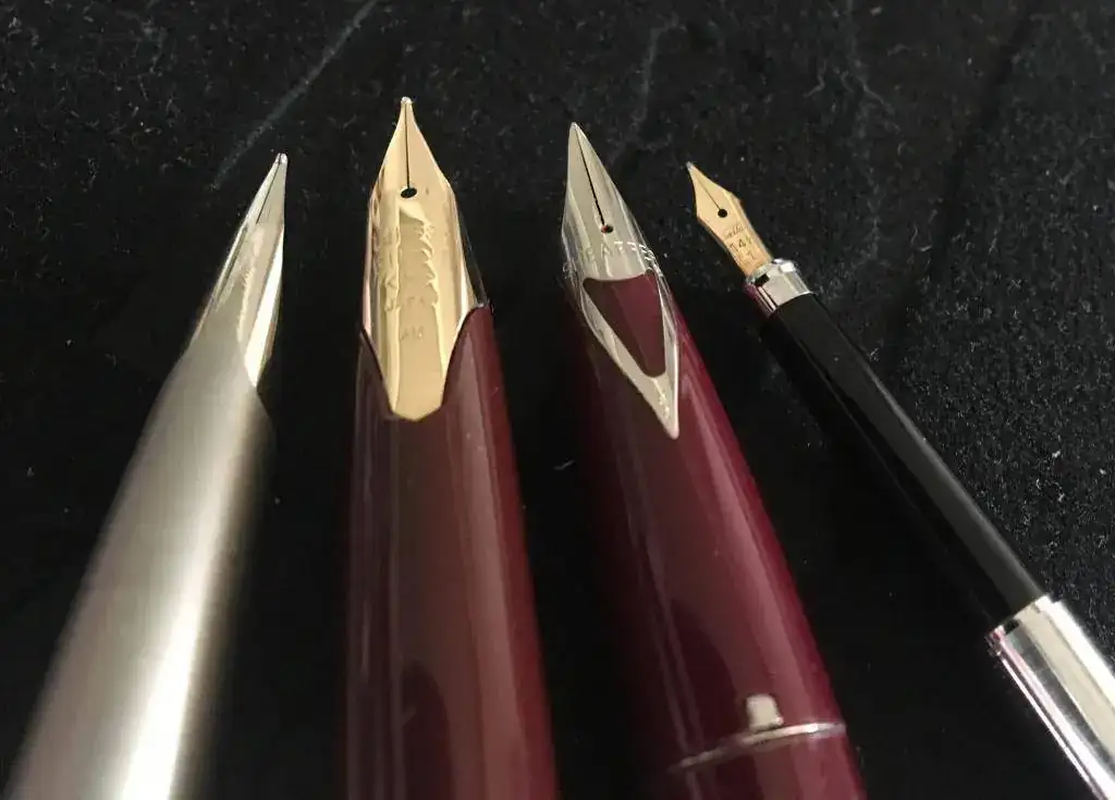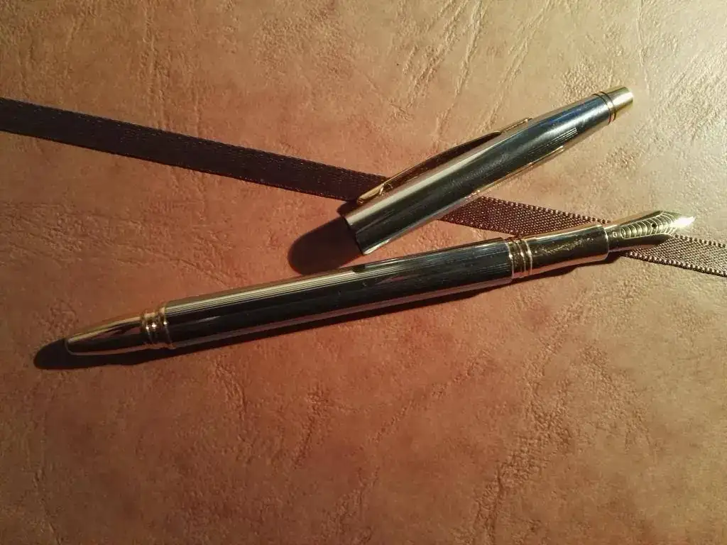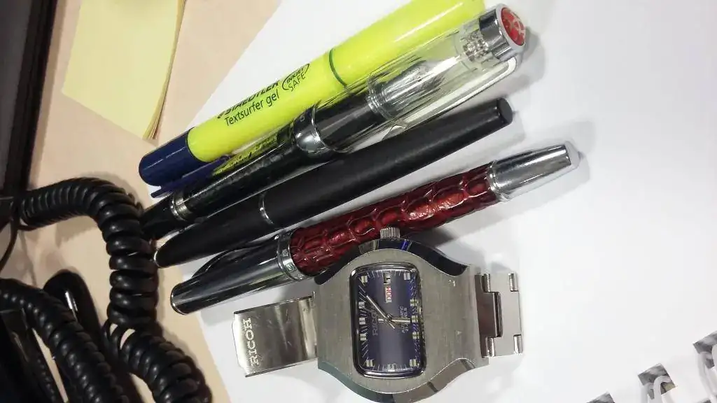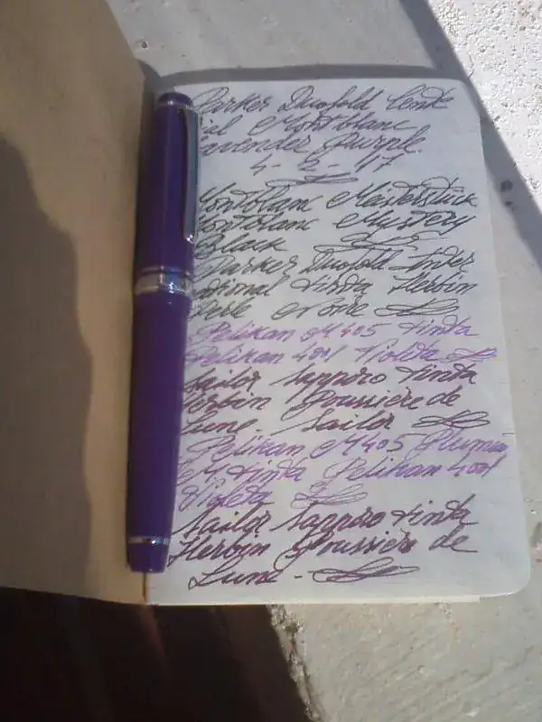 Esta semana utilizamos un par de Omas de celuloide: la Arco Brown y la Roma Cigar, bien acompañadas por una Pelikan dedicada al milenio de Austria, y una Waterman 14 eyedropper con camisa de oro, muy bien conservada.
