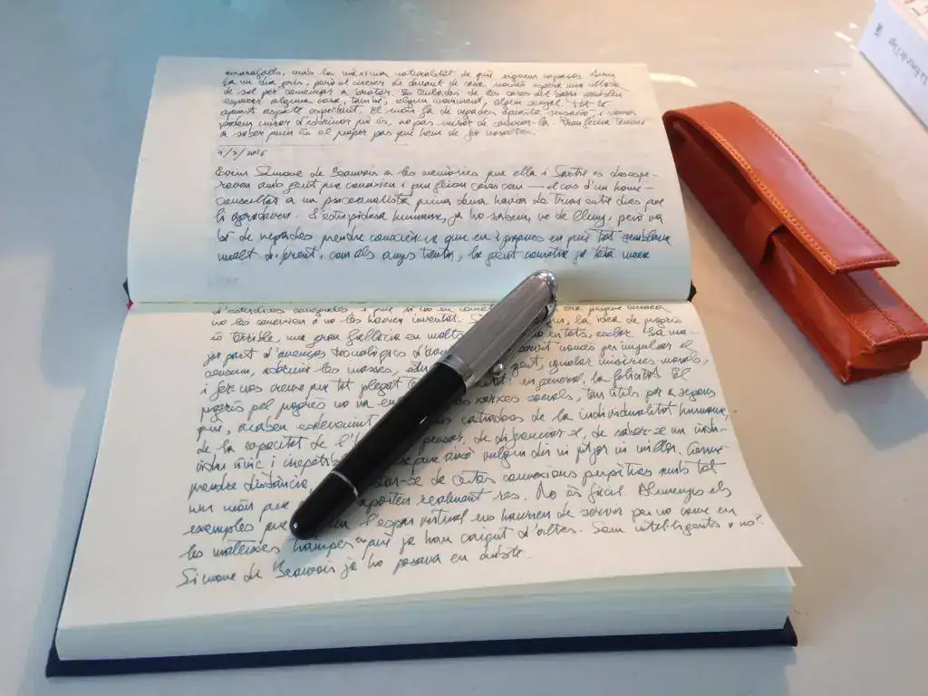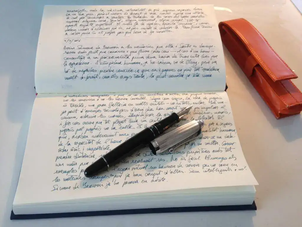 Me gusta la pluma, el cuaderno, la letra y la disposición al escribir.Sigo con la Aurora 88, nueva flamante. Para ella he estrenado un cuaderno con hojas de papel Tomoe River. Todavía no he cambiado de tinta; estoy esperando a que se acabe el primer depósito..., con el que he escrito 50 páginas de un cuaderno A5. Me parece una pasada.