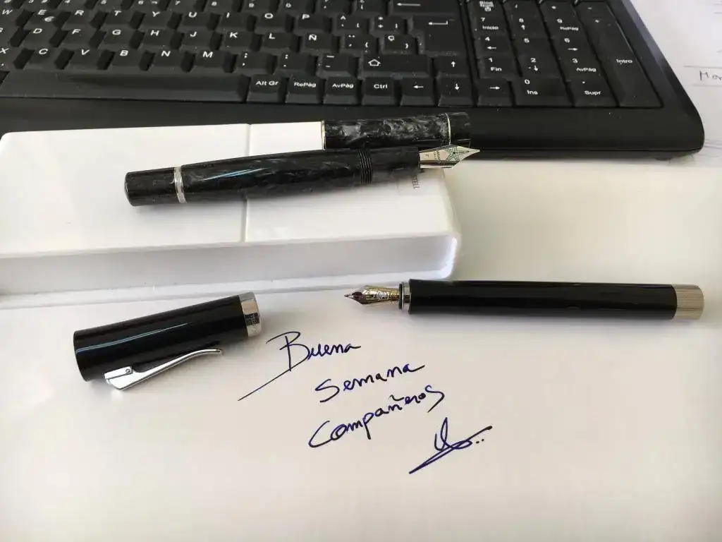 Buenas, Hasta donde yo sé, en las eyedroppper o cargas de cuentagotas, hay un remedio infalible: -Cargar un 50-60% del envase aprox, si se carga más, puede ser que cuando quede poca tinta, la expulse por el plumín por la diferencia de aire-tinta dentro del cuerpo. -En la rosca, grasa de silicona de la sección de marinismo del decartón(decathon o algún sucedaneo) <img src="https://relojes-especiales.com/foros/attachment.php?attachmentid=340390"/> La mia es esa misma, un botecito que dá para muuucho. 3º y más importante...una junta tórica para que no se escape ni una gota en la rosca del cuerpo al agarre de la escritura. <img src="https://relojes-especiales.com/foros/attachment.php?attachmentid=340392"/> Luego a disfrutar de la escritura. P.d en cuanto a mis plumas, sigo con las misma de la semana pasada, que están en reserva, y alternare el verde y negro. Saludos