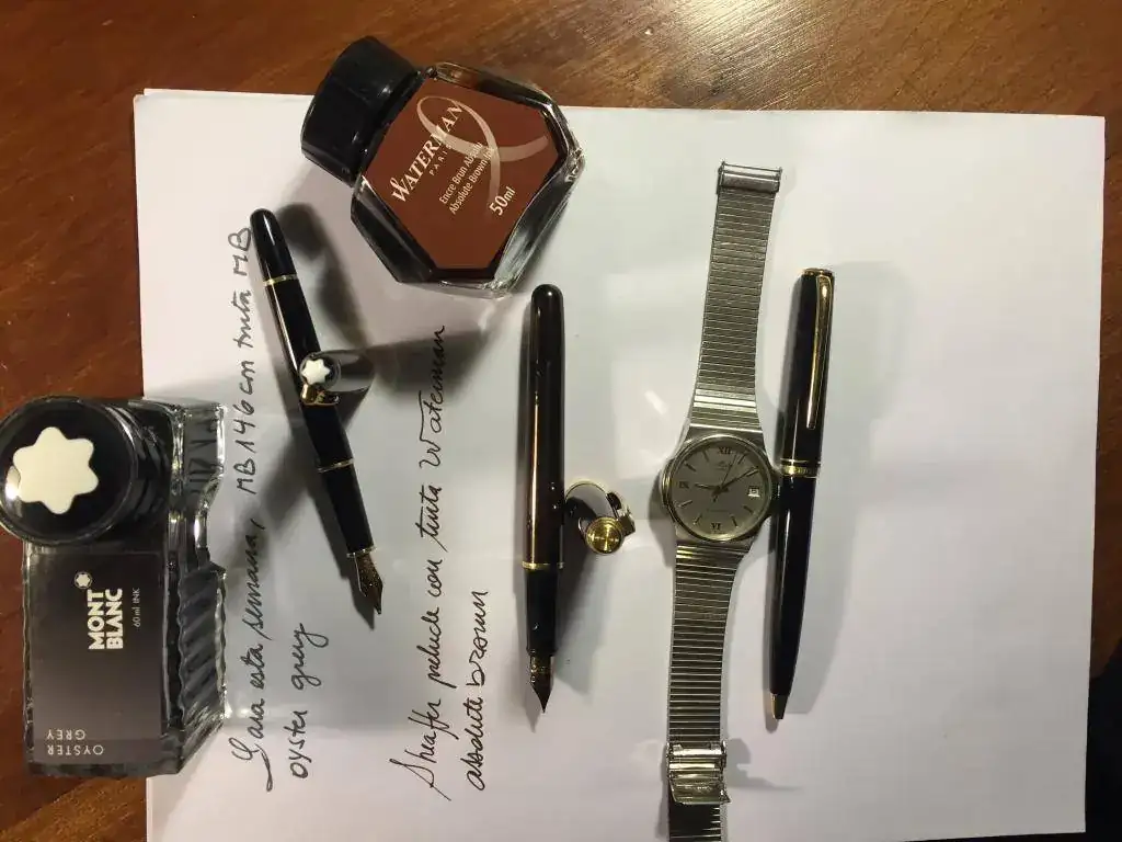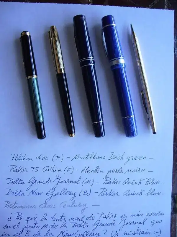 Me gustan todas, compañero, todas, las Deltas son impresionantes y una obsesión a la que llegué muy tarde, tienen un flujo y una suavidad inmensa, Pero esa Parker 75, esa Parker. Definitivamente (y no quiero convencer a nadie) ya no se fabrican estilográficas como antes, pero ni mucho menos.Ahí van las de esta semana, aunque casi todas están agotando su carga así que sospecho que algunas no acabarán la semana. Una mala foto, para variar ...