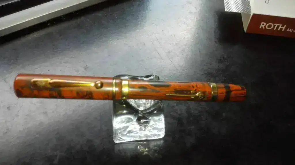 Aquí os traigo una Parker Woodpen. Una rareza que pertenece a una edición limitada que se realizó en 8 maderas diferentes. Esta es de raíz de no sé que madera. Es muy agradable al tacto, pumín rígido de oro y con gran capuchón y un clip más grande aún.