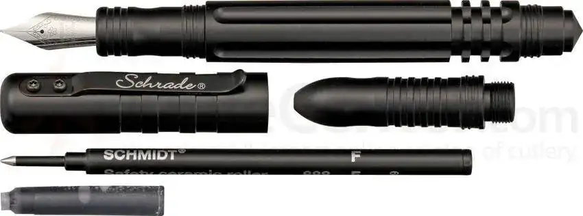 ¿Alguien conoce las estilográficas tácticas? Son más conocidos los bolígrafos tácticos, bolígrafos que por su construcción metálica y forman pueden servir para autodefensa, pero también hay al menos un modelo de estilográfica táctica, la Tactical Fountain Pen by Schrade
