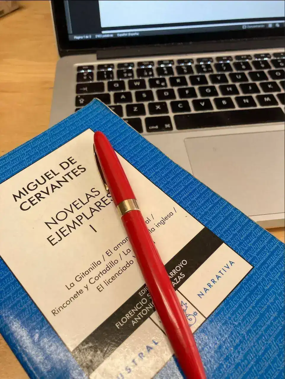 Retomando al tema, por una colaboración breve (un par de entradas para una enciclopedia), he tenido que volver con Rinconete, en edición de mis maestros Antonio y Florencio, que en paz descansa. Me acompaña una Sheaffer Snorker que adquirí aquí a un compañero por curiosidad y se ha convertido en la que más utilizo para anotaciones.