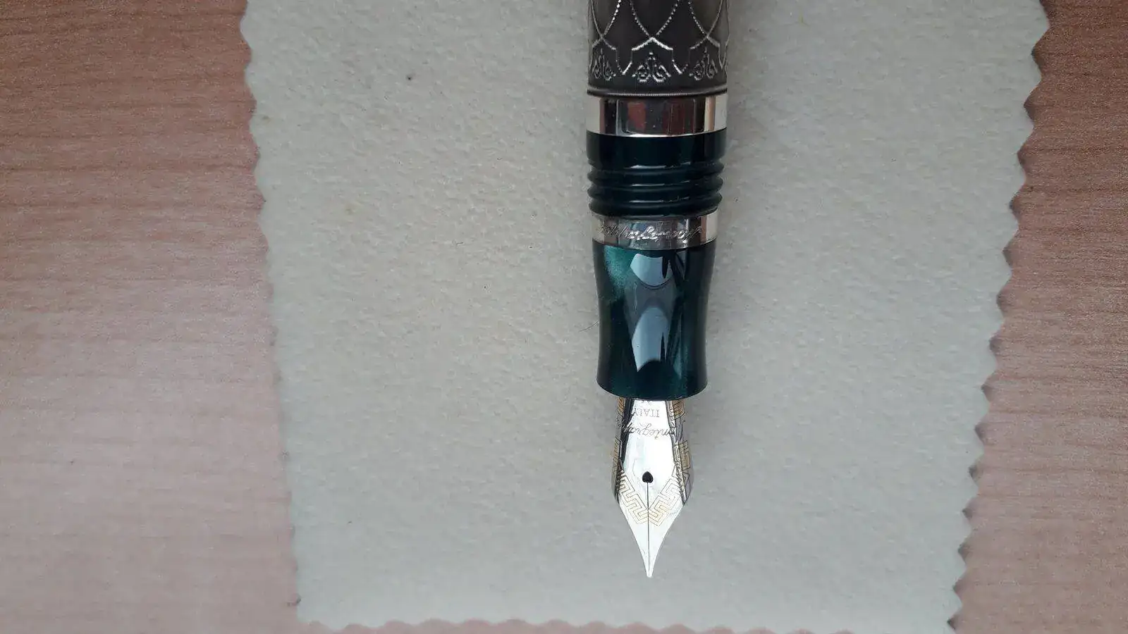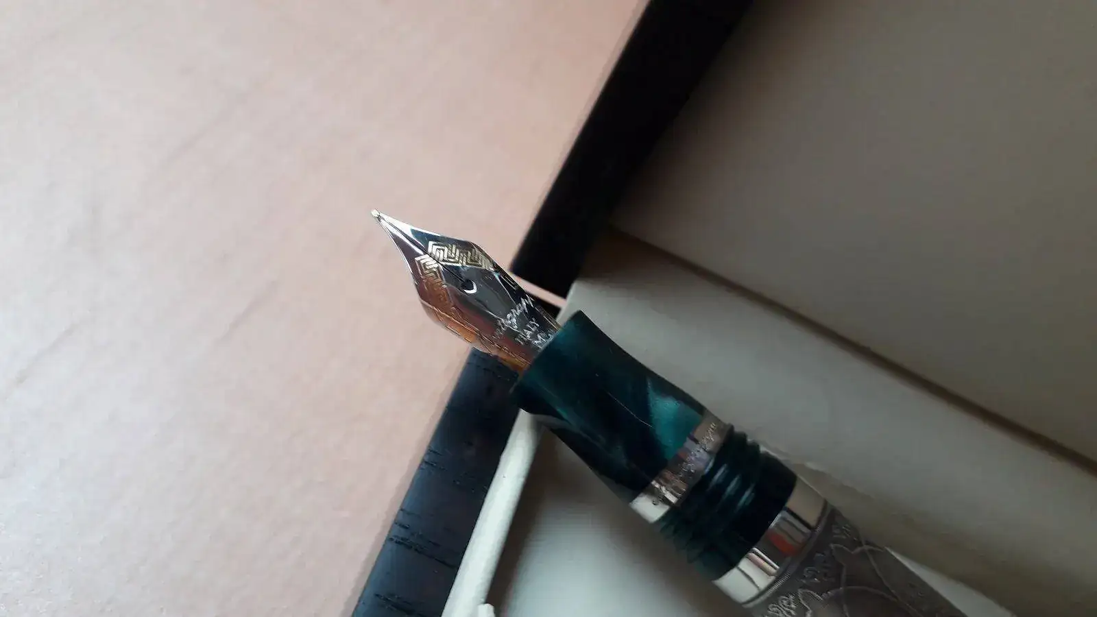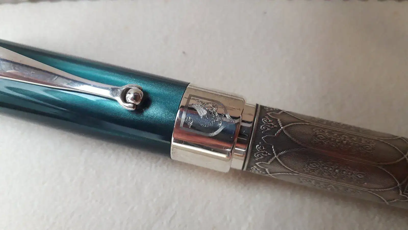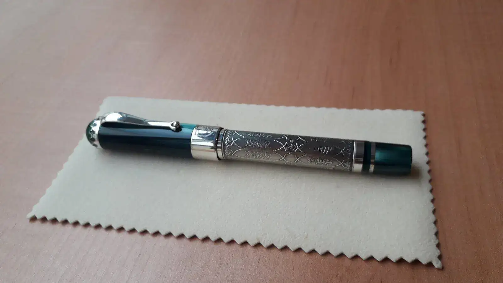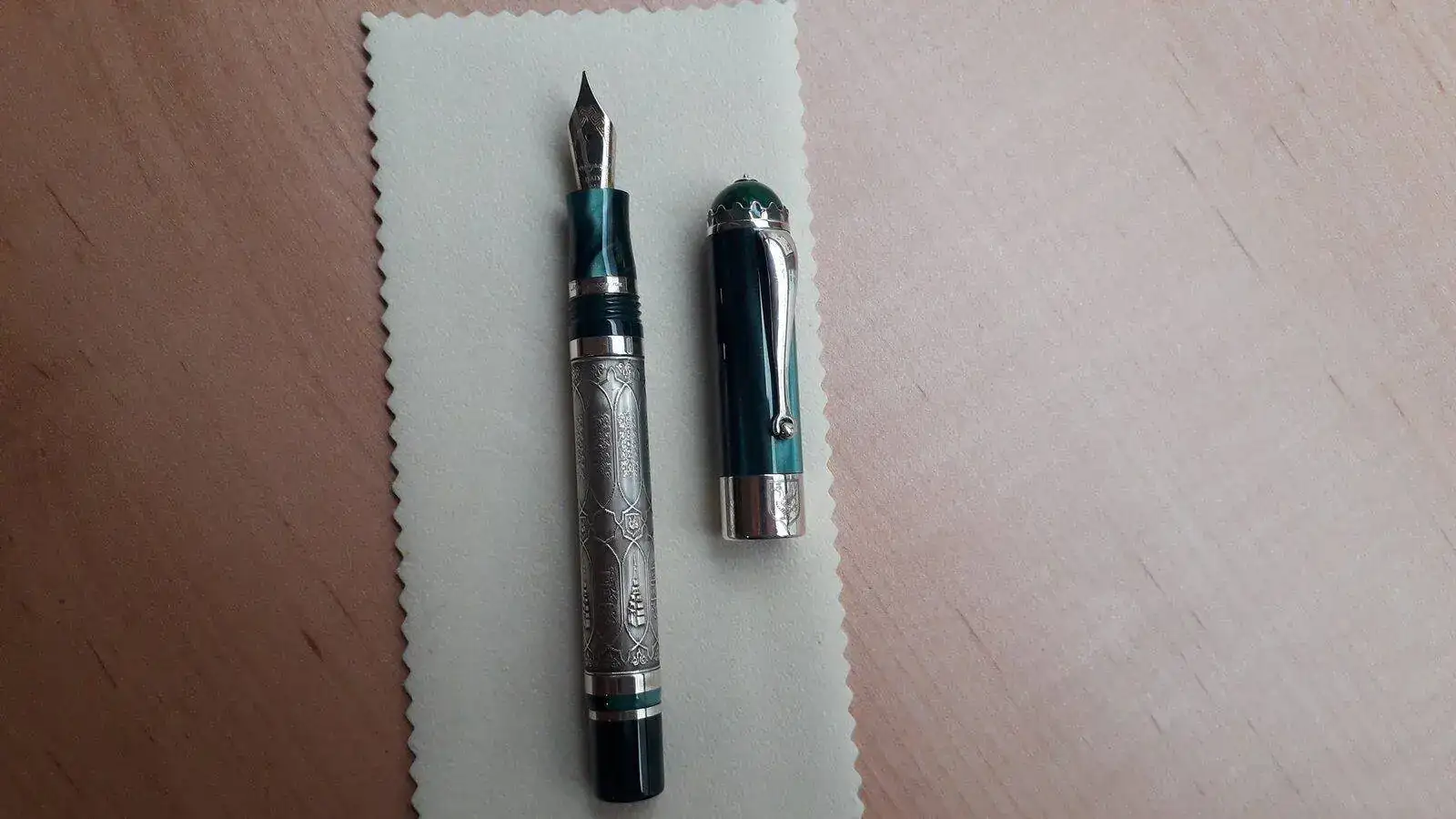 Se vende pluma Estilográfica serie limitada Kazan en honor a esta ciudad milenaria cuna del pueblo Tartaro ....Como sabéis esta Estilográfica es espectacular, construida en plata trabajada de manera artesanal y resina verde preciosa...es una pieza espectacular y escasa ya que solamente se han fabricado 500 piezas para todo el mundo siendo esta la número 349....la Estilografica no se ha utilizado nunca como mucho solo probada en modo palillero para comprobar el trazo...El estado de la pieza es excelente..