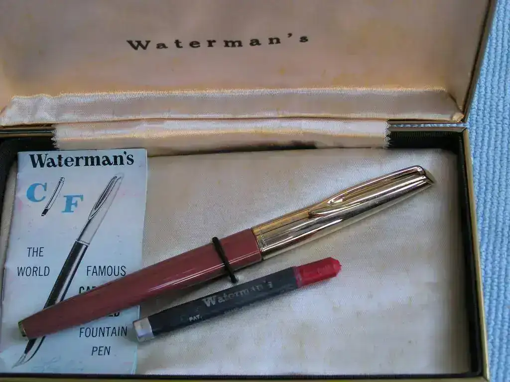 Estilográfica “WATERMAN” de finales de los años 50 en un raro color maquillaje y con el capuchón dorado liso.