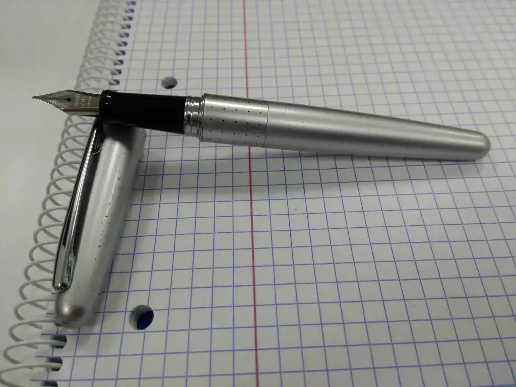 -Pilot kaküno😛unto fino, cuerpo color gris, capuchón color rosa