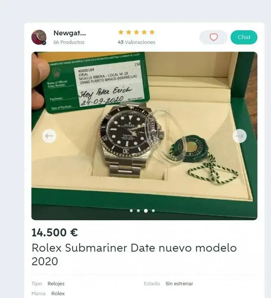 Sabía que poner el anuncio aquí en RE podía llevar a crítica por el alto precio, pero yo no critico a nadie por lo que vende o compra, yo puedo aportar a cualquier interesado en el reloj la factura mía de compra al comerciante de Chrono24 al que compré por 15.500€, y ojo que pasé días esperando y enviando ofertas a todos los vendedores que tenía cerca a mi presupuesto hasta que conseguí alcanzar la rebaja que llevaba al mío, el precio original de venta por cierto era otro: 16.700€ (visto así no está tan mal