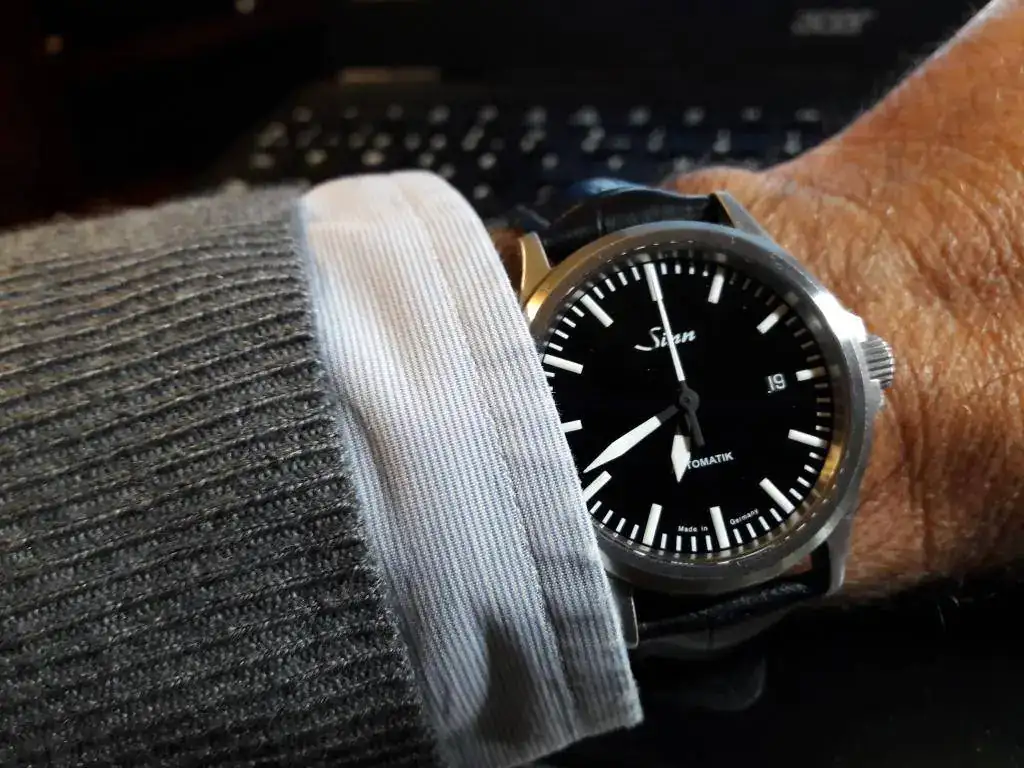 Tengo, también, problemas de vista y 62 años. Mi muñeca es de 15 mm así que siempre relojes pequeños. Este es el más grande que tengo y creo que entra dentro de tus medidas. Que te guste o no ya es otra historia. Es muy legible, negro, la aguja del minutero toca las divisiones de los minutos y ves muy bien el minuto exacto, el mov. es ETA, armis y por menos de 500 euros los tienes nuevo.