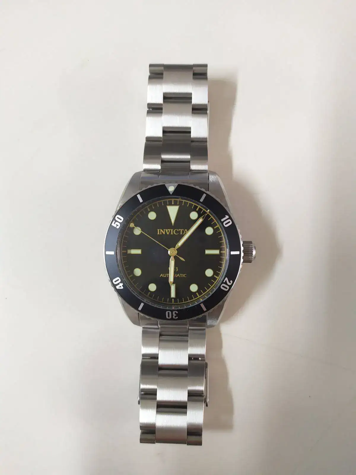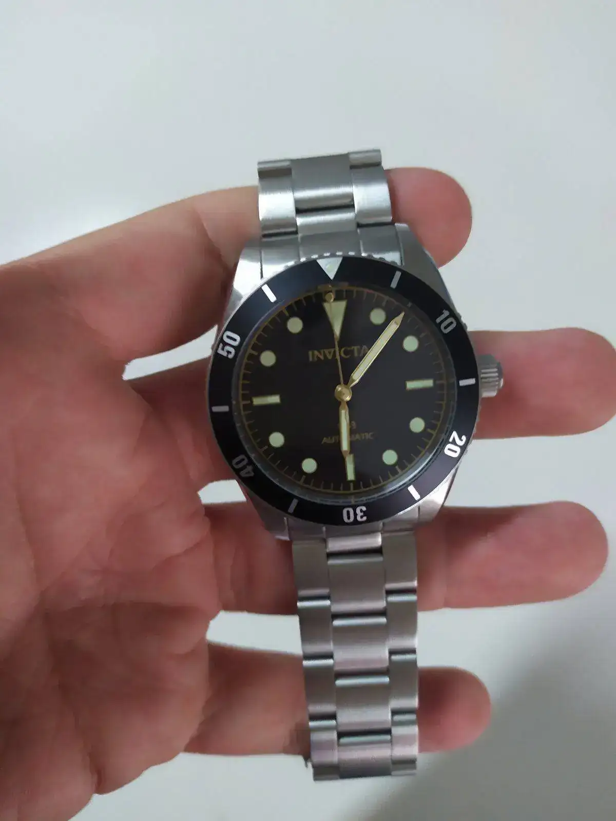 No deja de ser, sin desmerecer la marca y en mi opinión, uno de los productos clásicos de Invicta : NH35, Cristal mineral, lumen justo si no lo han actualizado, bisel metálico....., a un precio algo alto