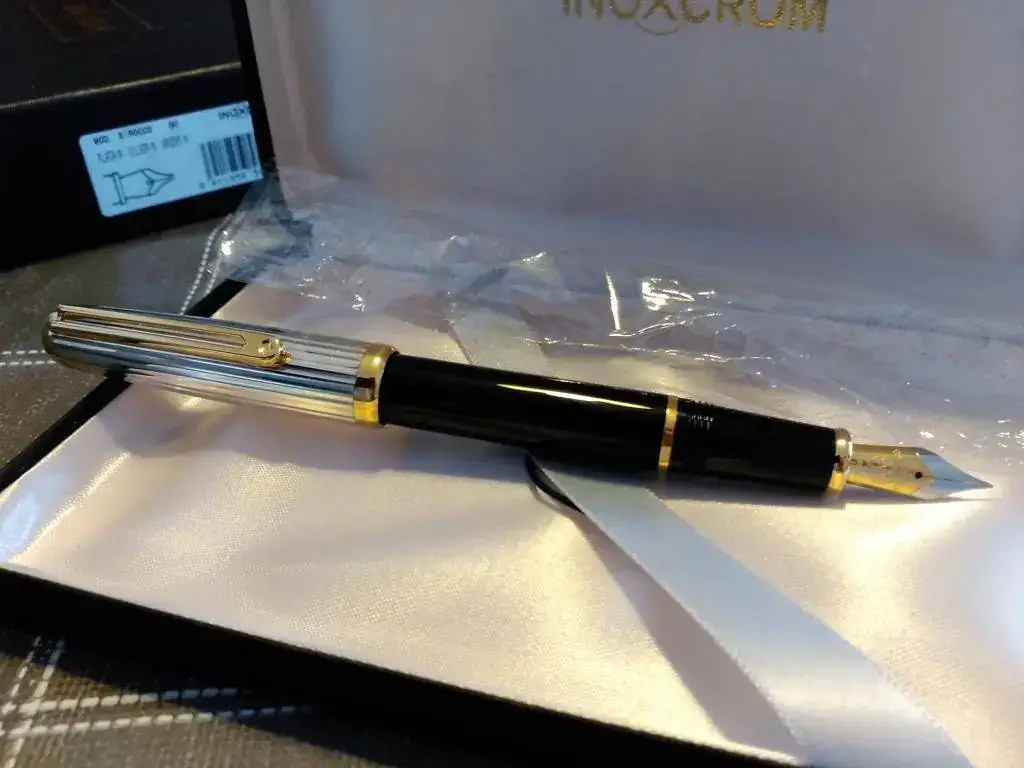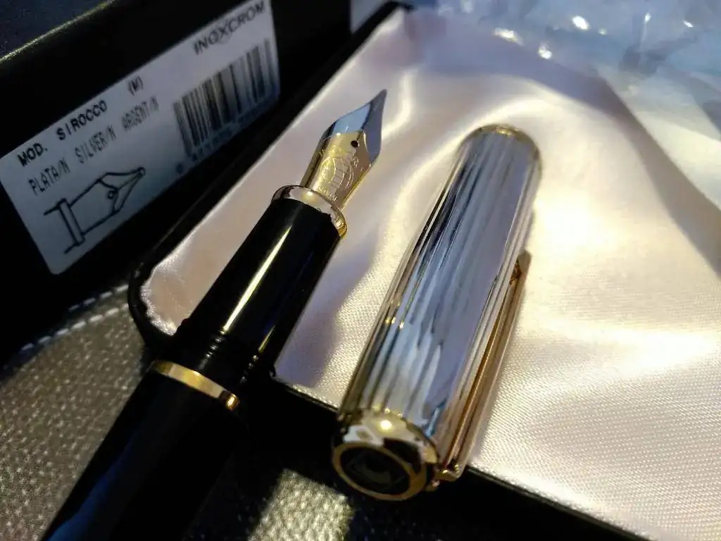 La pasada semana la fortuna volvió a sonreirme, y me encontré con una Inoxcron Sirocco de capuchón de plata, con estuchería completa.......y sin estrenar