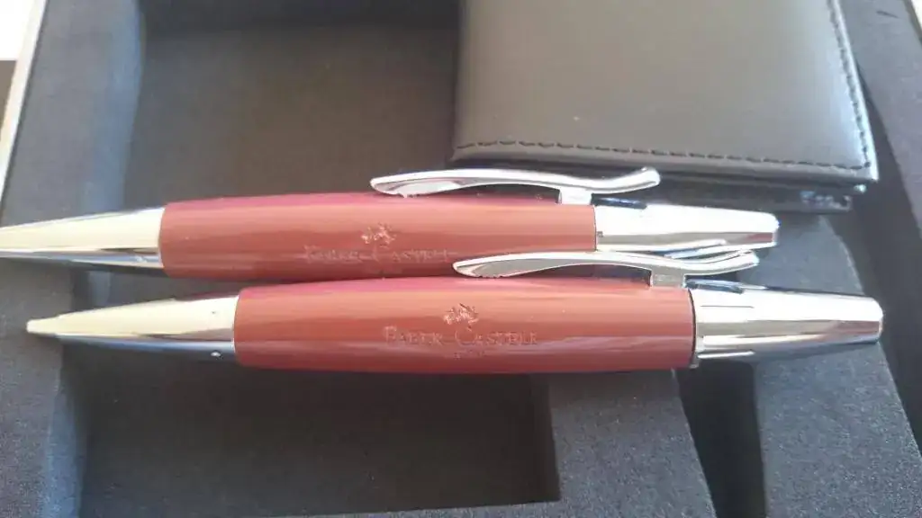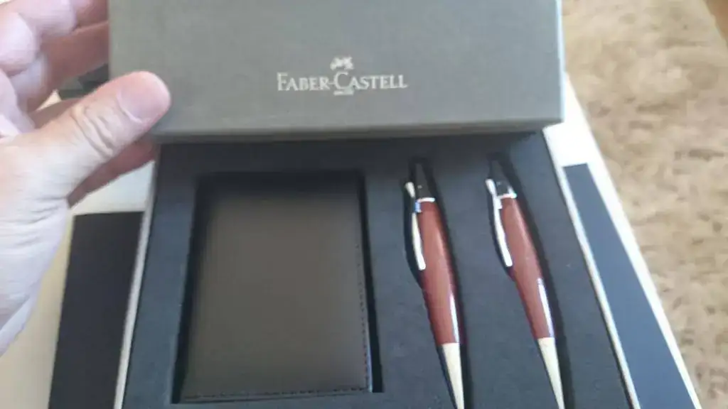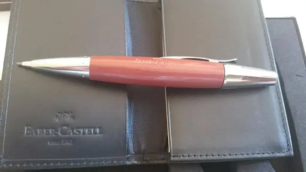 Estuche faber castell compuesto por un portaminas, bolígrafo y cartera.