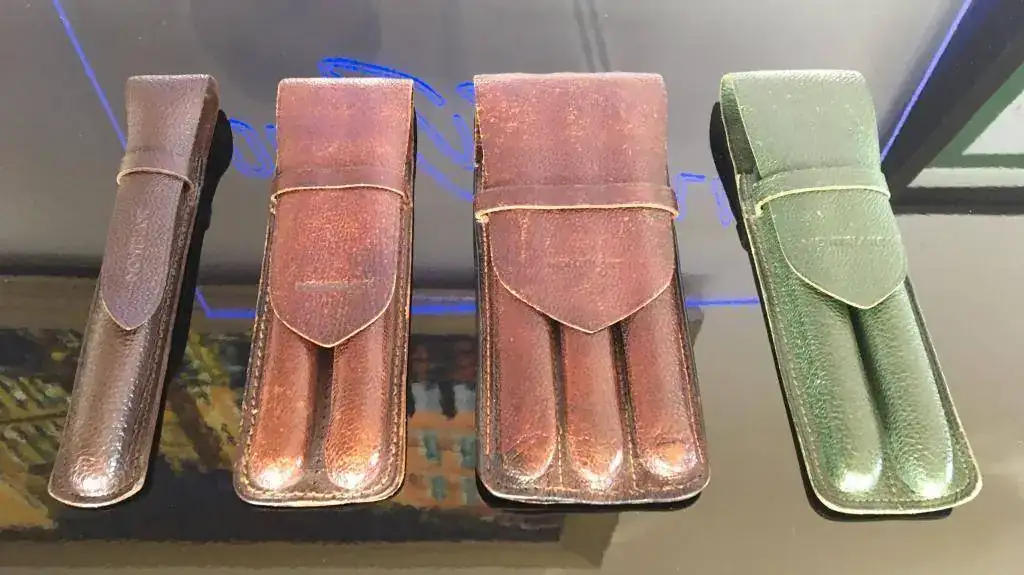Hace poco recibí un precioso estuche para 2 plumas con un tacto y un estado excepcional para los años que tiene. Investigando he podido identificarlo como el nº 129: