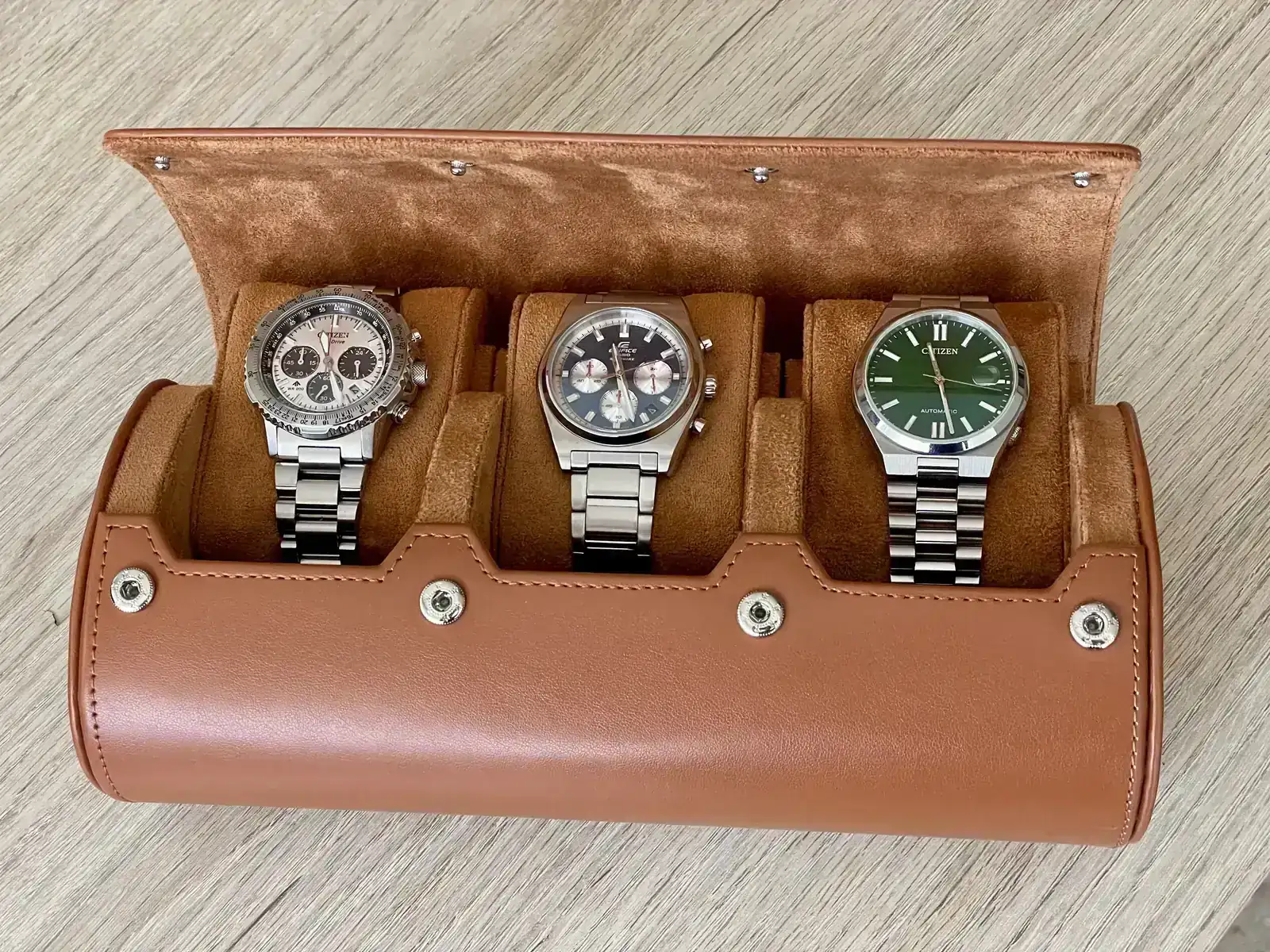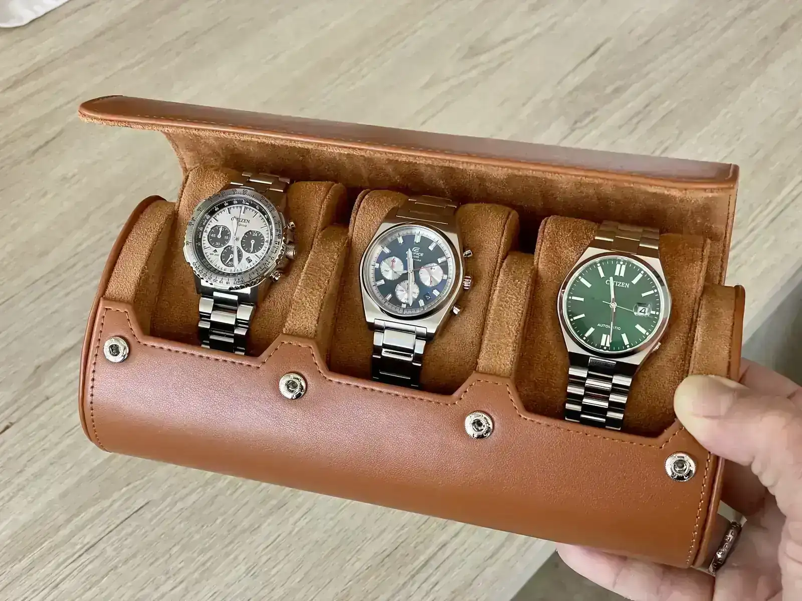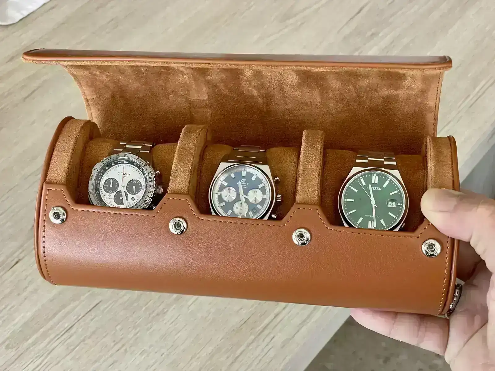 Con capacidad para tres relojes, más el cuarto que llevas puesto entra perfectamente en una mochila pequeña lo que lo hace muy cómodo 💪🏻