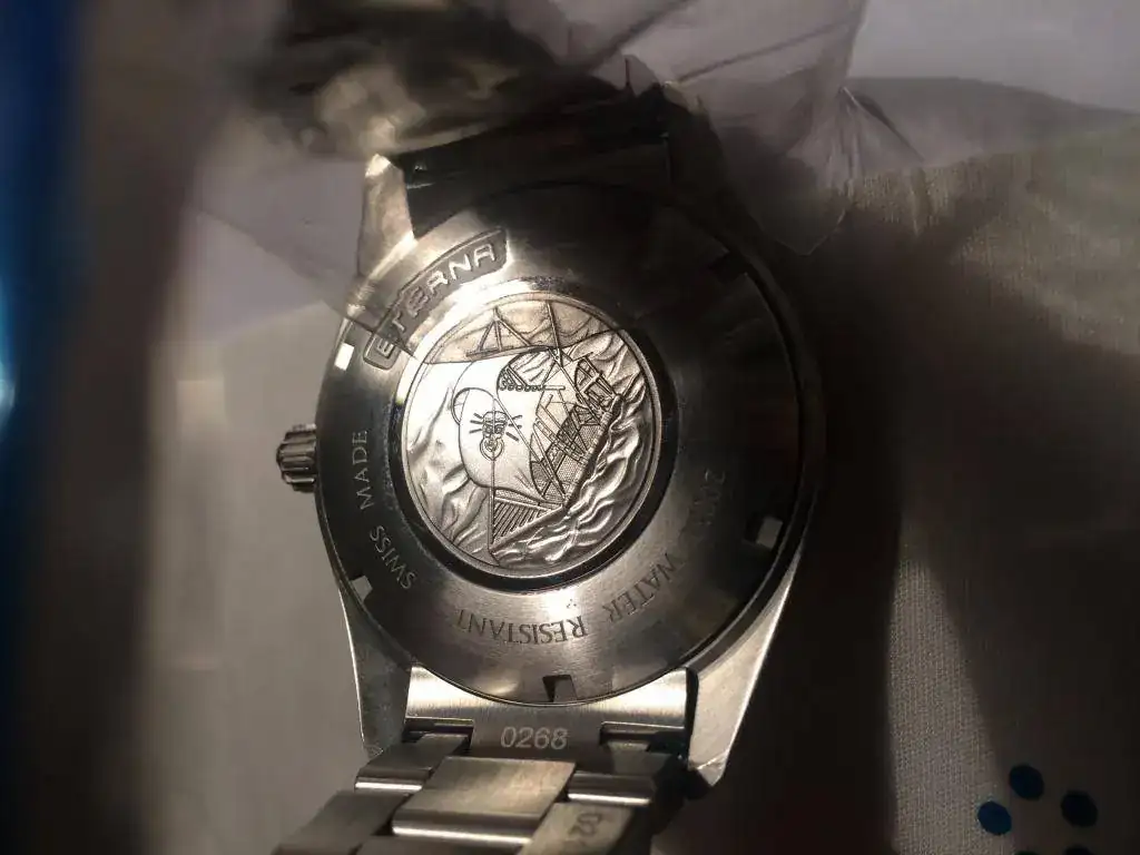 Se trata de un modelo icónico, de una calidad de acabados fuera de lo común, que atrae inmediatamente la mirada por su combinación de deportividad y elegancia desenfadada. Hace tiempo que este modelo de Kontiki date está descatalogado, y encontrarlo así, sin usar, fue casi un milagro. Podría decir que el reloj es nuevo, puesto que no se ha usado ni una sola vez, pero técnicamente ya no lo es puesto que se ha adaptado el armis para una muñeca de unos 18 cm.