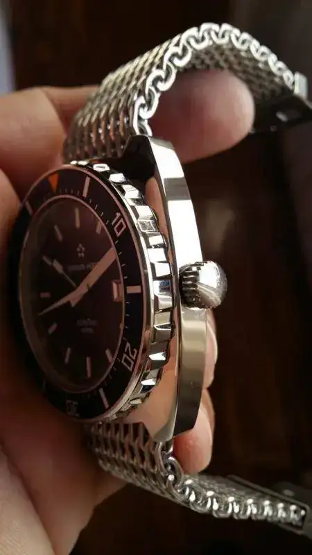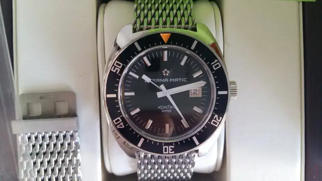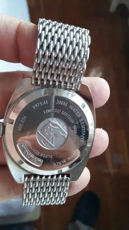[TD]El cierre es regulable en varias posiciones para ajustar el largo. La milanesa es muy cómoda y de una calidad excepcional, es la misma de Omega. Sin marcas en el cierre, insisto que el reloj es de reestreno.[/TD]