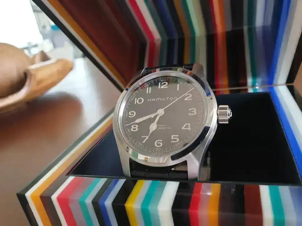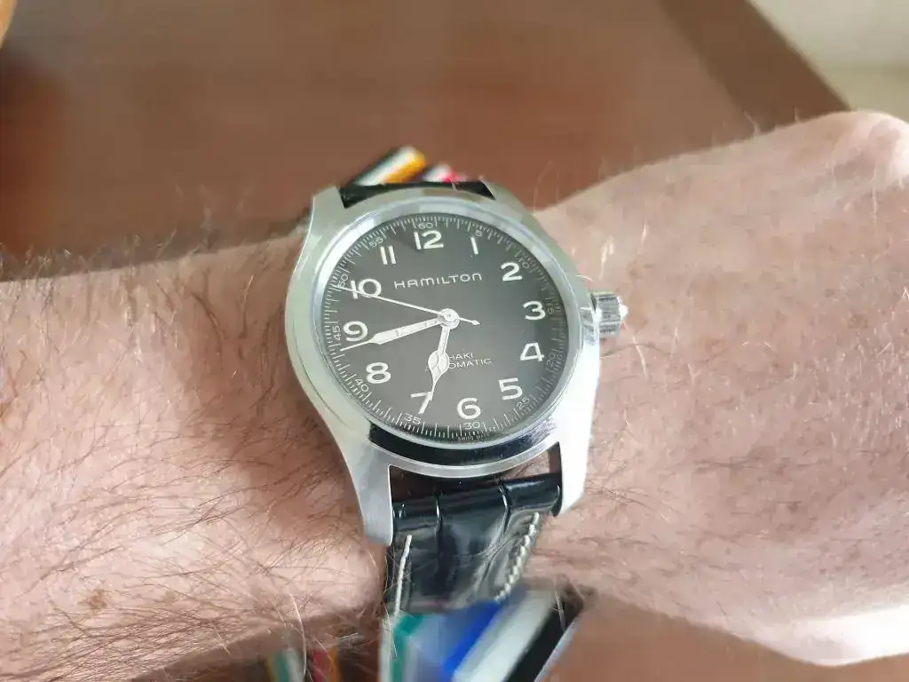 Los 42 mm son mi límite de tamaño máximo (juraría haber leído en otro hilo que es de 44) y me gusta su sencillez, así que ya tengo claro el primer Hamilton que compraría.