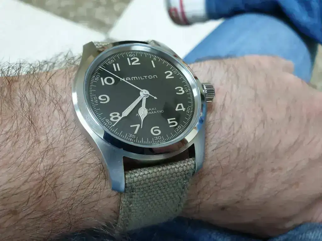 Si señor, ahy relojes que le quedan bien un monton de pantalones,y no es por de decir pero las correas originales de hamilton son fantasticas.Pongo foto de la nueva correa que le pille, es original Hamilto y, en mi opinión, len queda como un guante