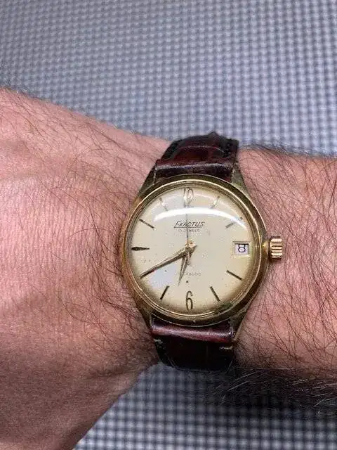 De entrada le puse una correa que tenía por casa y lo he llevado puesto a ratos. Personalmente me parece muy bonito. Sé que el valor económico es mucho menor que el sentimental, pero de todos modos me gustaría conocer más sobre el modelo y adecentarlo en lo posible para usarlo (yo o mi hermano).