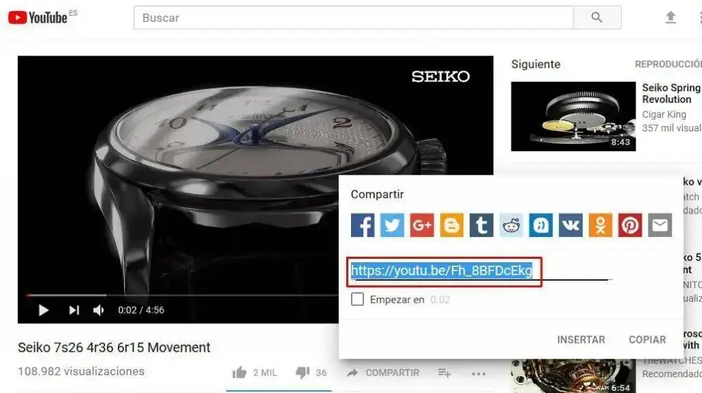 3/ Copias la URL y la pegas en el cajetín de 'insertar vídeo' del foro