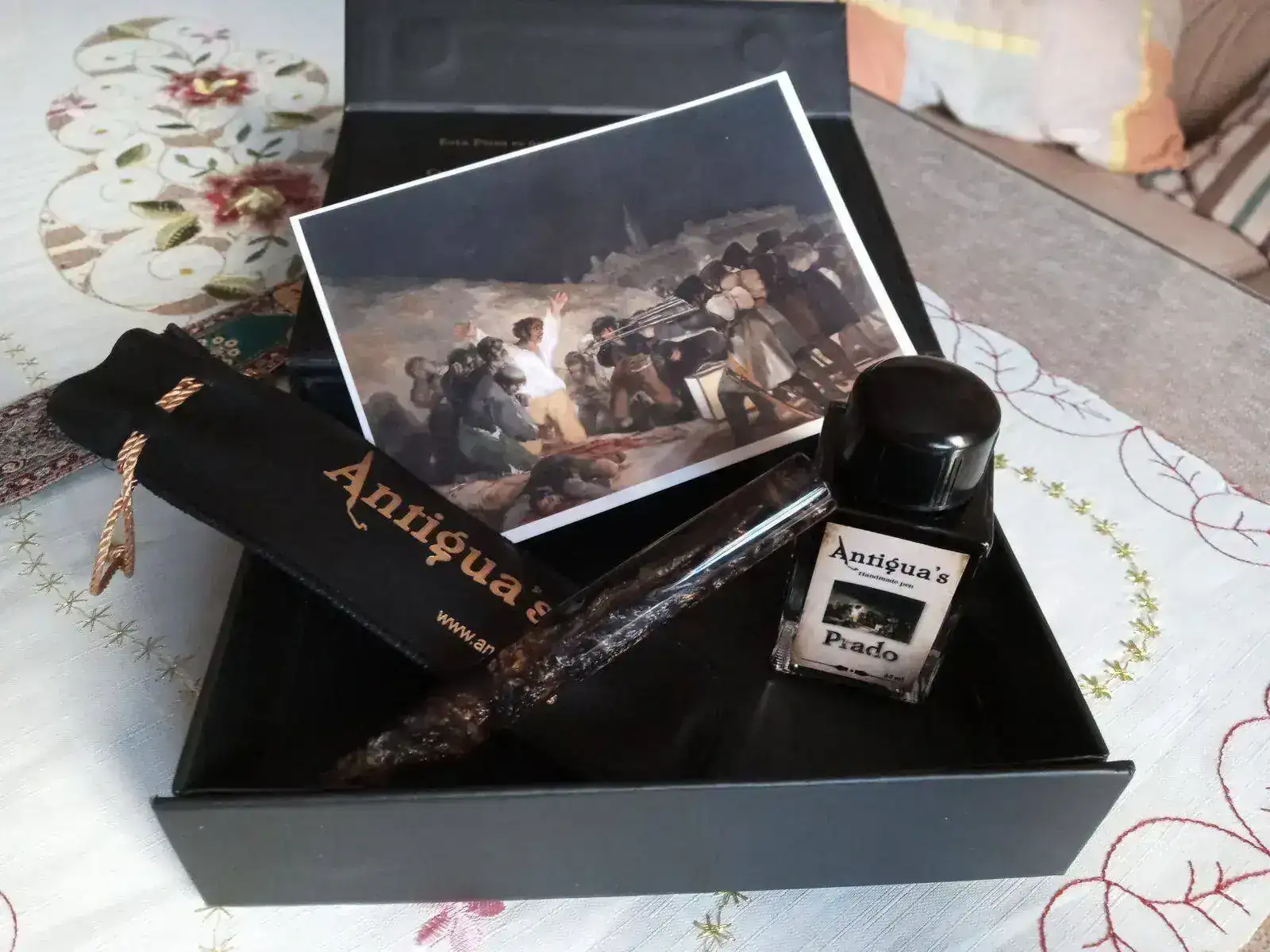 En mi modesta opinión, los grises, ocres, blancos del cuadro de Goya, quedan perfectamente reflejados en el cuerpo de la estilográfica.