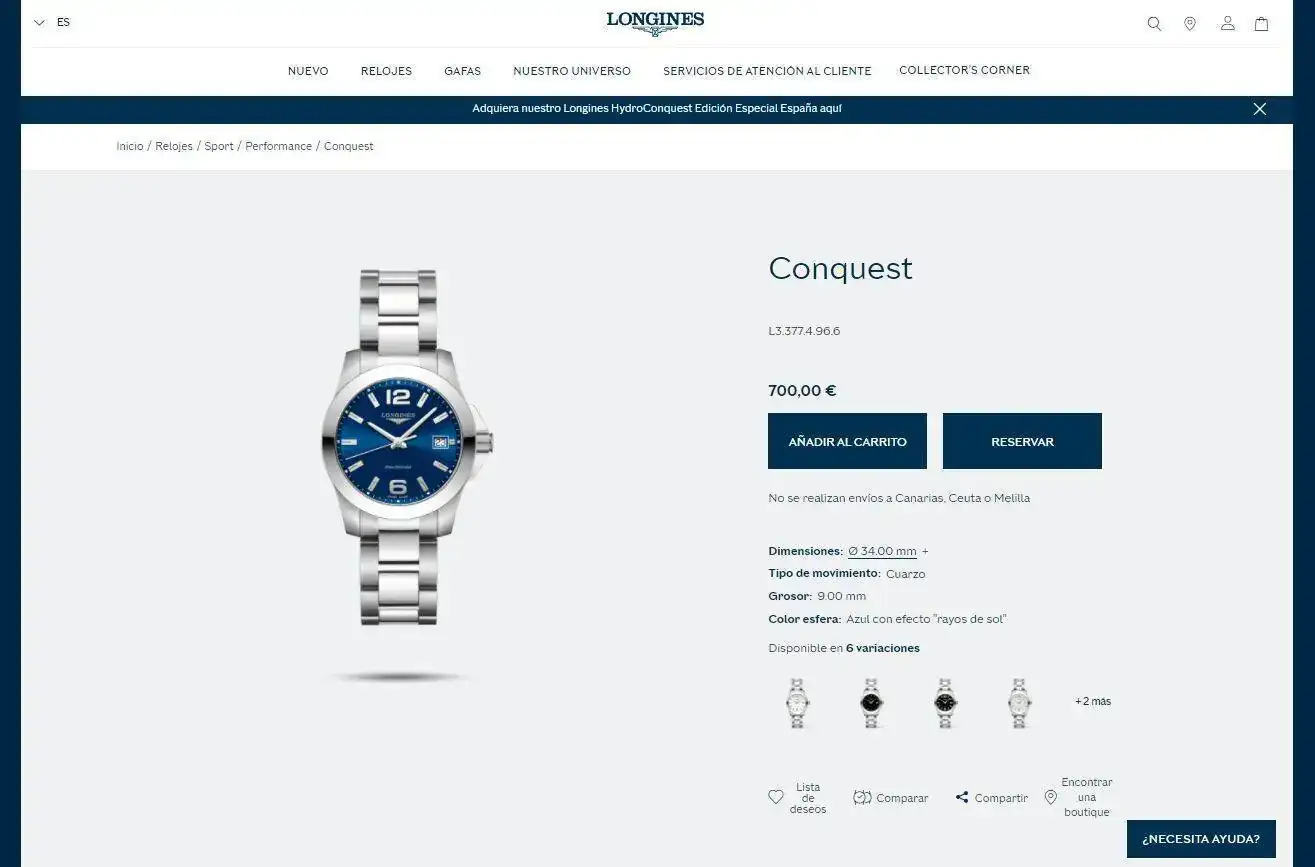 LONGINES CONQUEST BRILLANTITOS 34MM