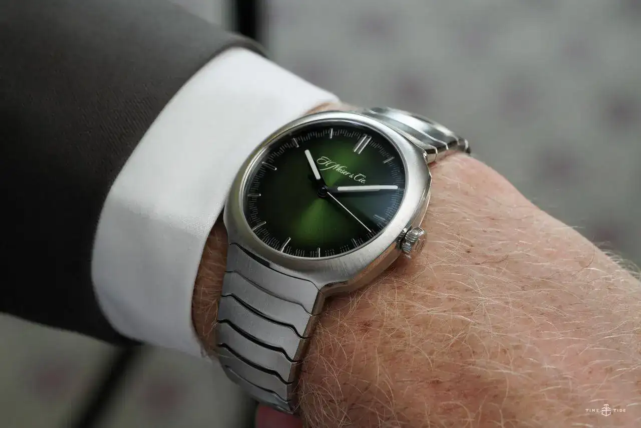Wempe. El de la foto es cuarzo azul de 36mm, pero lo tienes automático, azul o negro y 36 o 40mm. Corona roscada y 100m. Brillos los justos