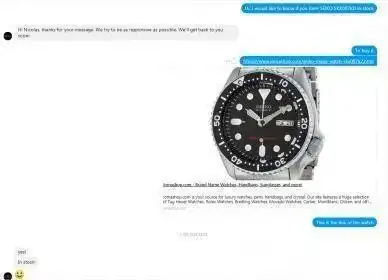 1) Consultar STOCK del reloj que quieren comprar. Siempre consulten si hay STOCK ya que si realizan la compra y no hay stock puede que tengan que esperar que vuelvan a tener Stock y puede que en la fecha que vuelvan a tener Stock ya no esten de viaje por ejemplo. La consulta yo la hice a través del chat de la página en Facebook (Consultenen Ingles) (https://www.facebook.com/JomaShop/ )