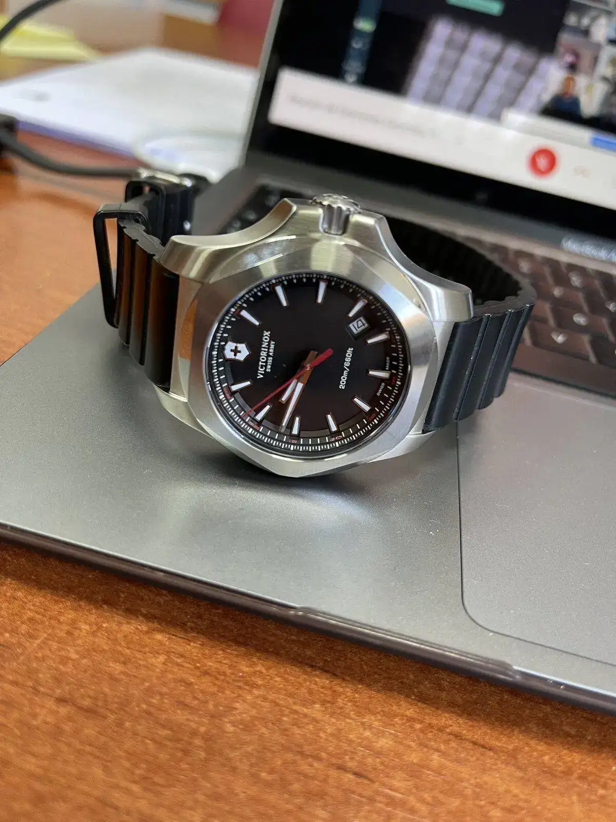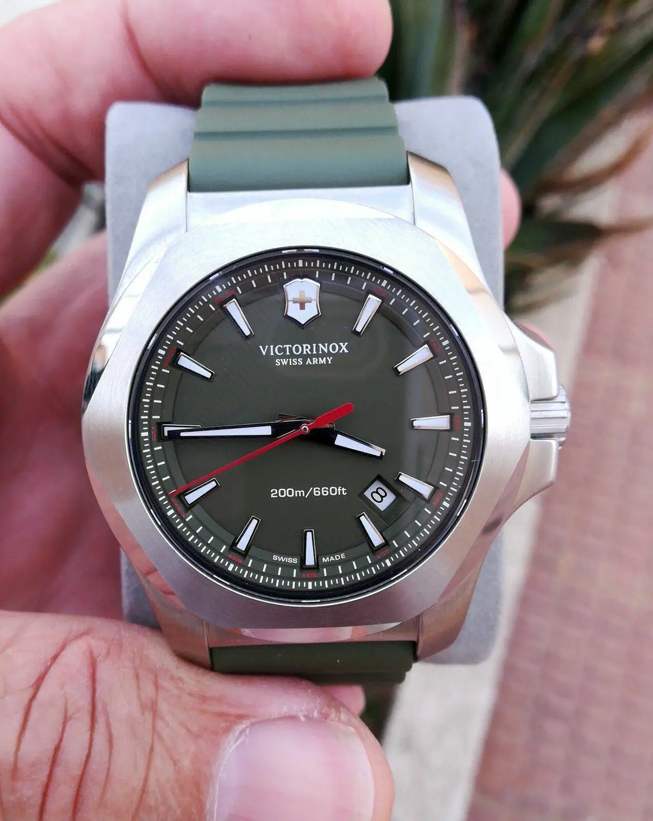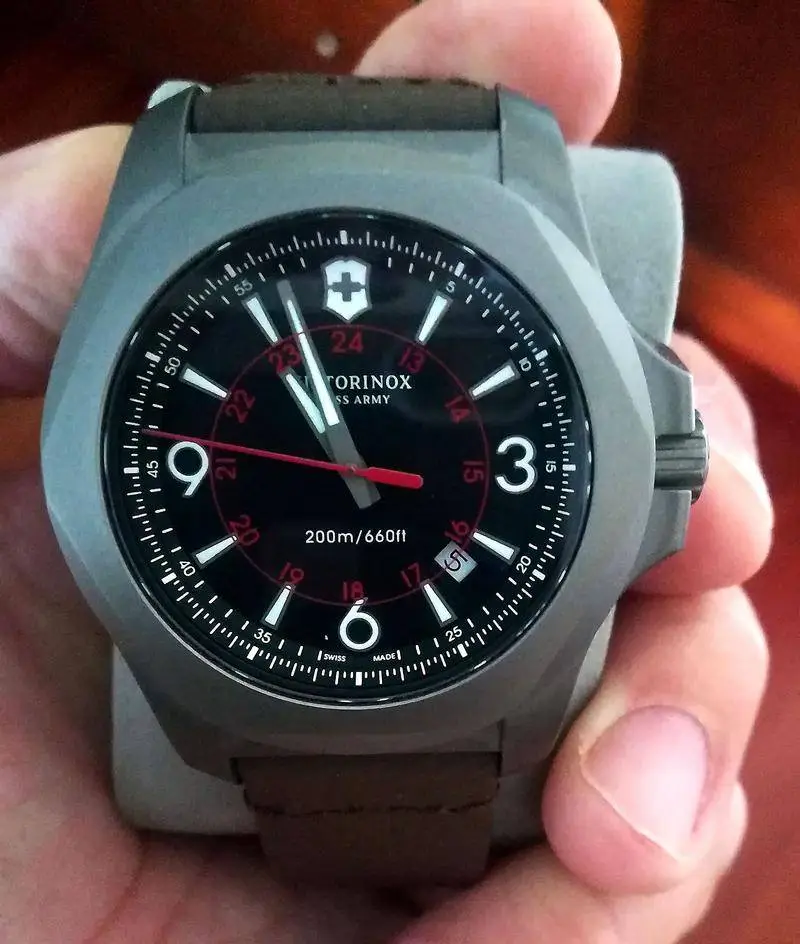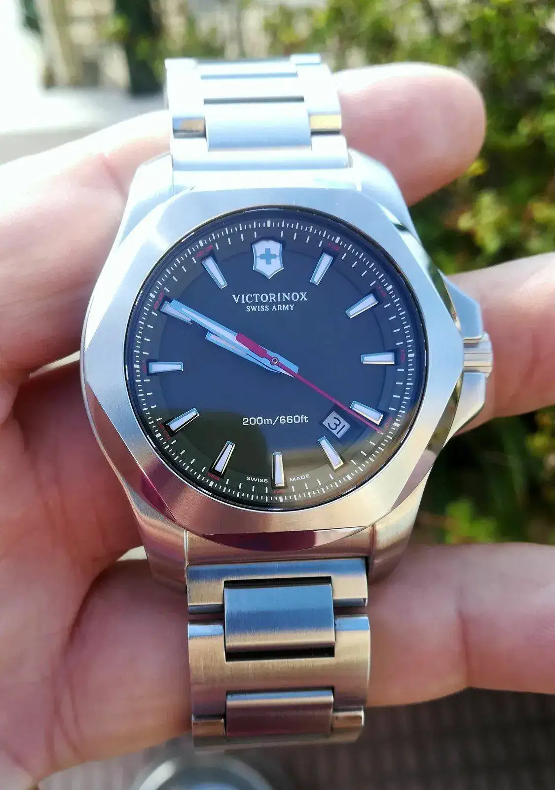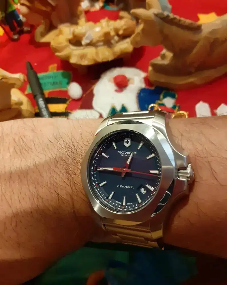 Te pongo el Victorinox Inox en cuarzo, que yo he tenido, en su versión verde, que me parece la más singular...
