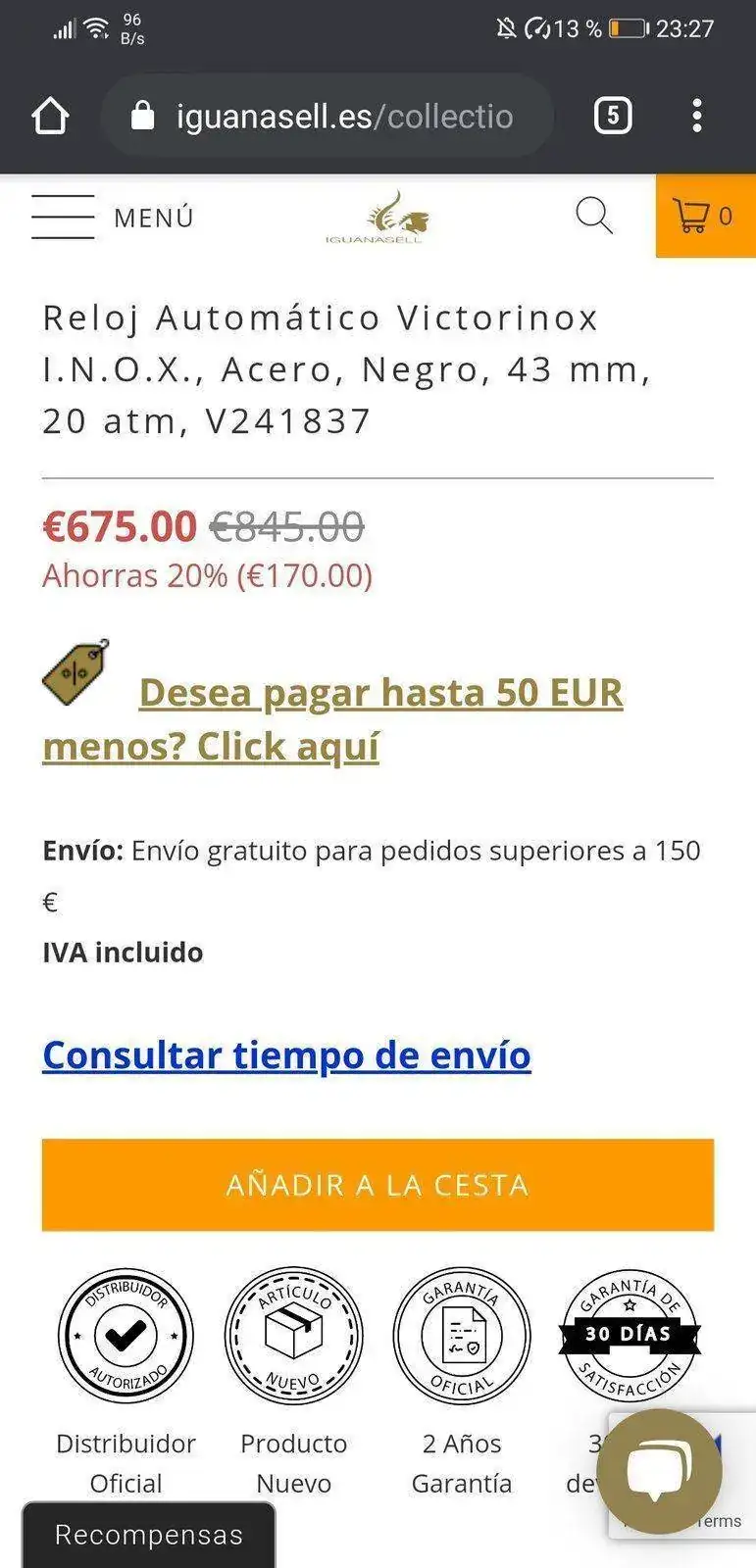 En la versión INOX de cuarzo, su calibre Ronda, siendo suizo, no es lo mejor que gasta la marca Ronda...