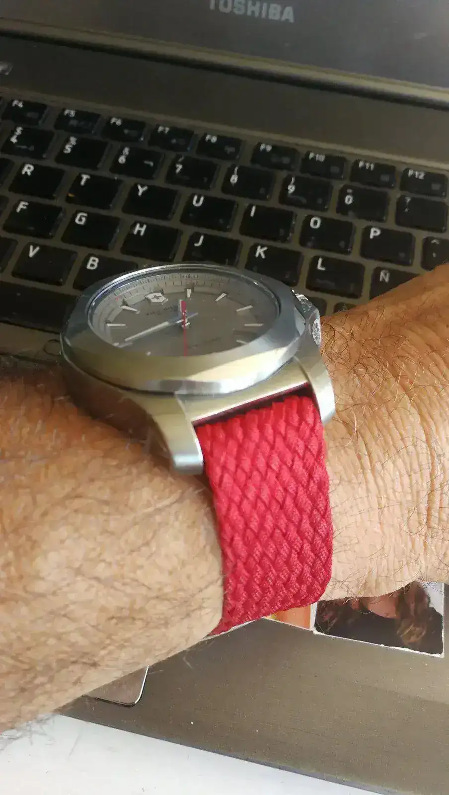 Por cierto, el brazalete de goma de la marca muy cómodo y le queda muy bien también, y sobre todo la correa de Paracord ya lo convierte en una bestia parda 😊 , te pongo foto de internet: