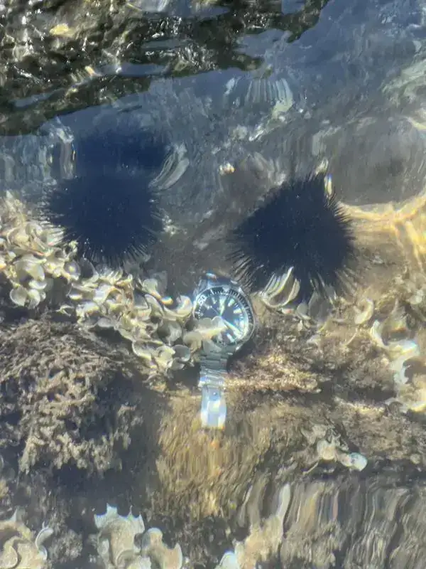 El caracol lo tenemos en la lista, junto al erizo violáceo y la estrella roja; pero este erizo y estrella no.